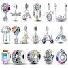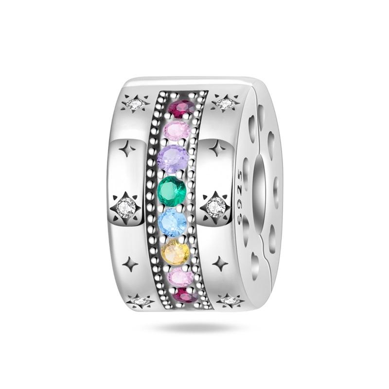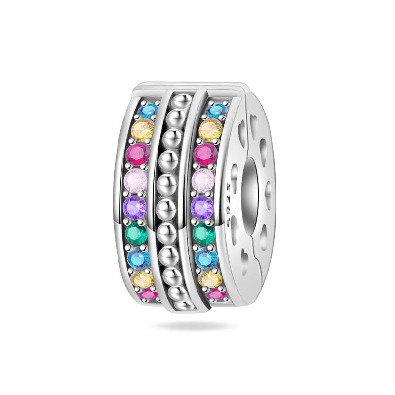 Sparkling Copper Colorful Zircon Fixed Clip Beads & Whirlpool Dangle Charm Fit Bracelet & Necklace Exquisite Gifts