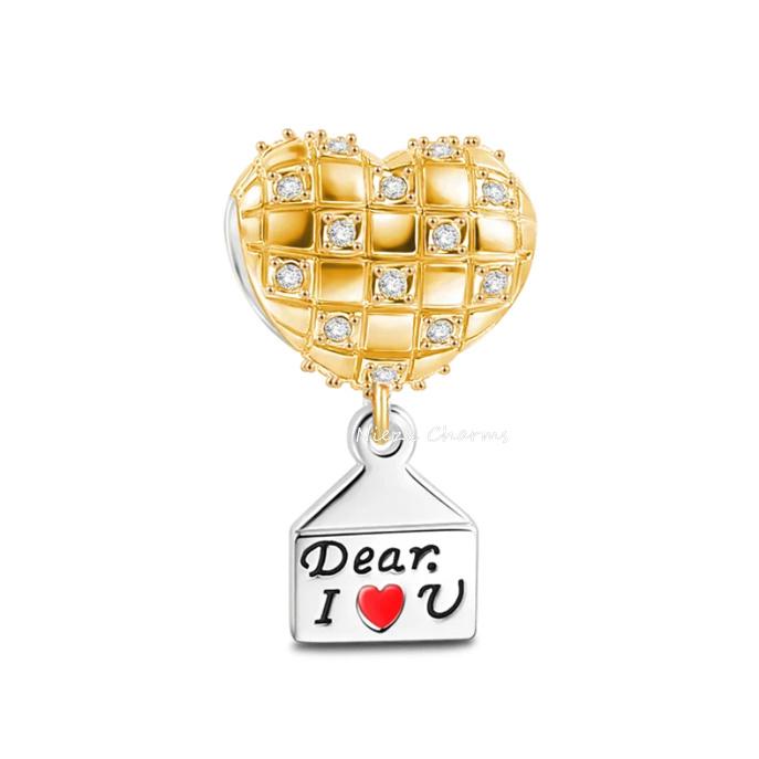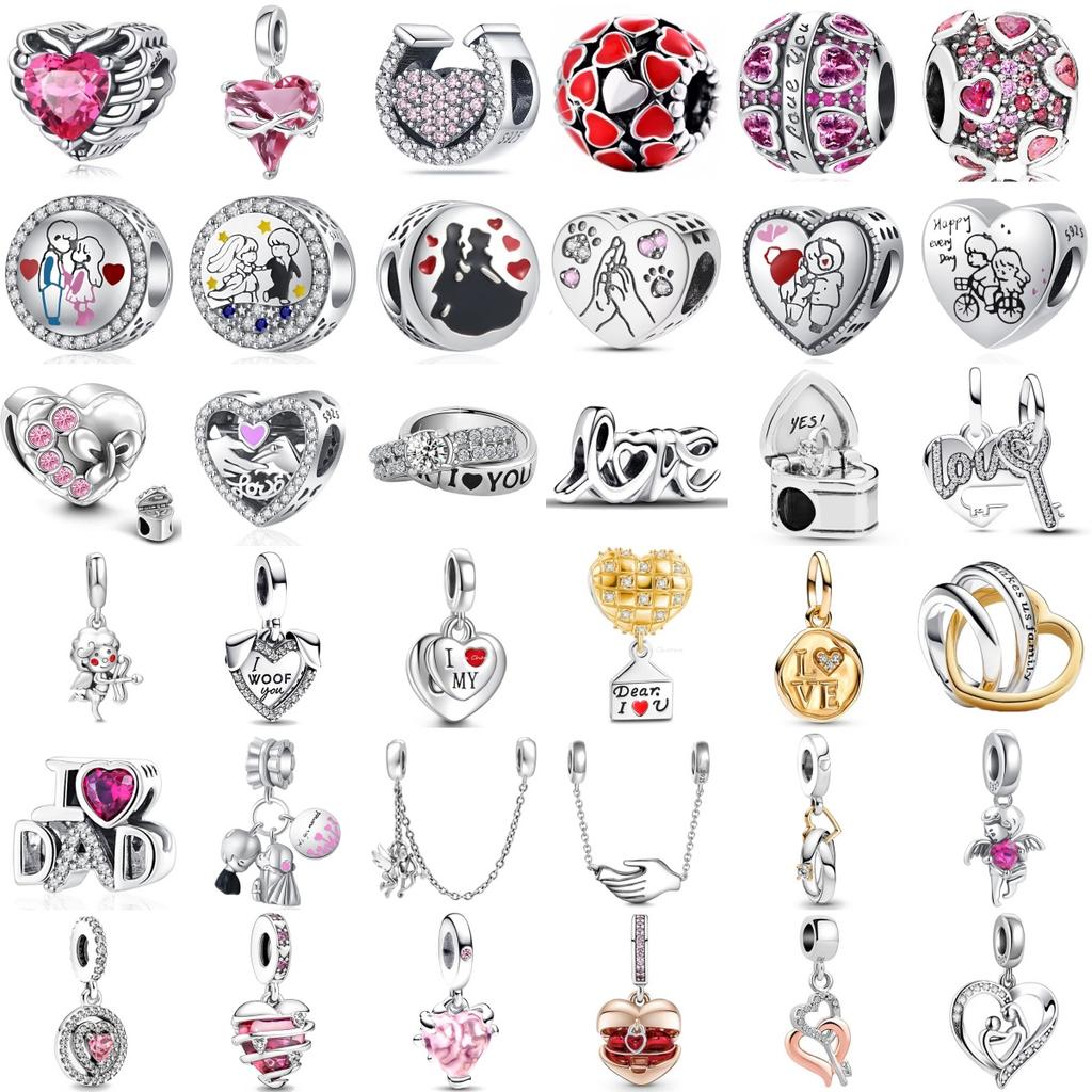 I Love You Valentine'S Day Sparkling Pink Diamond Love Copper Charm Beads Fit For Original Bracelets Diy Women'S Jewelry Gift