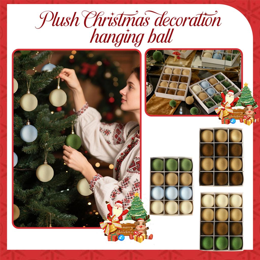 6cm 12pcs Mixed Color Plastic Flocked Christmas Balls, Colorful Hanging Balls, Christmas Tree Ornaments, Boxed, Window Decoration Round Balls