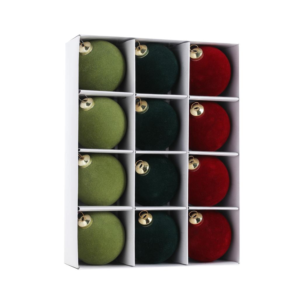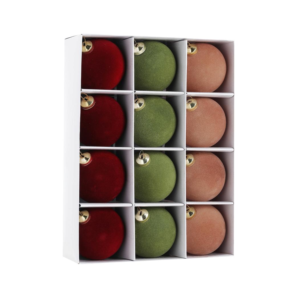 6cm 12pcs Mixed Color Plastic Flocked Christmas Balls, Colorful Hanging Balls, Christmas Tree Ornaments, Boxed, Window Decoration Round Balls