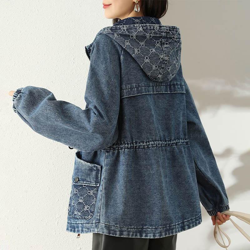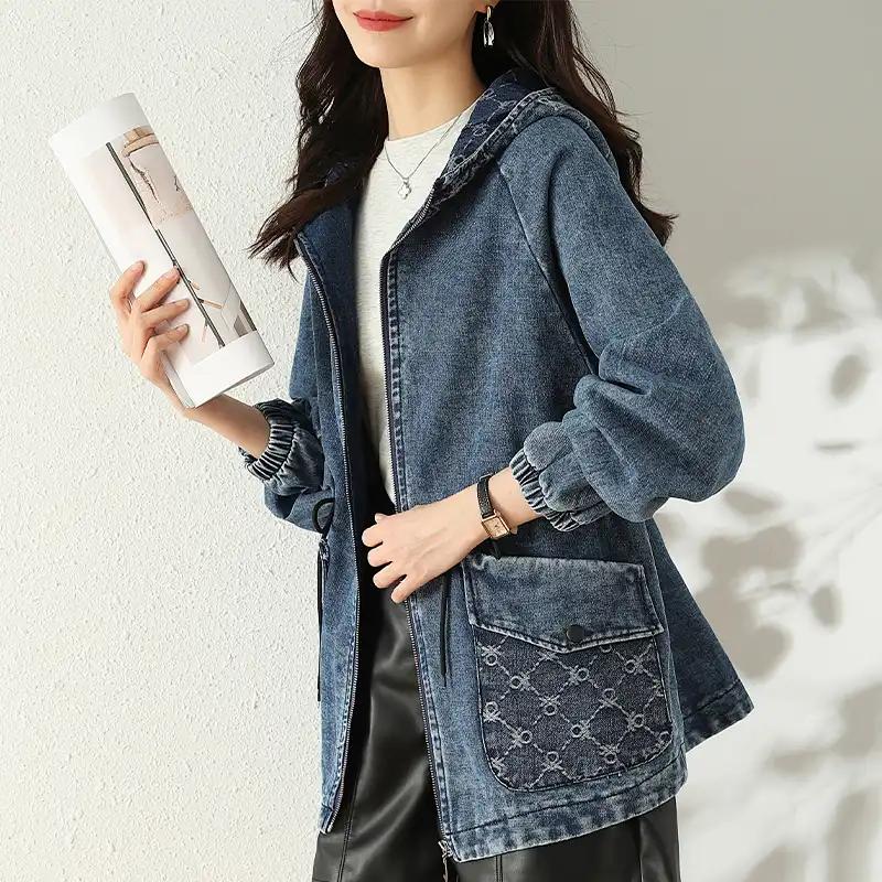 Джинсовая куртка Хлопок Зима Женская Зимняя с капюшоном Винтажная Оверсайз Теплая куртка Пальто