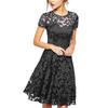 Женское модное платье с круглым вырезом, короткими рукавами и кружевной отделкой
