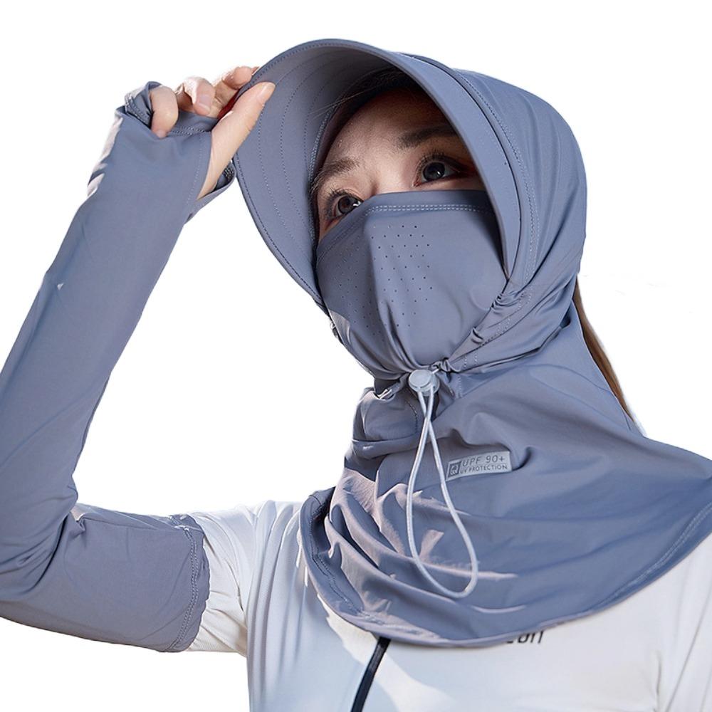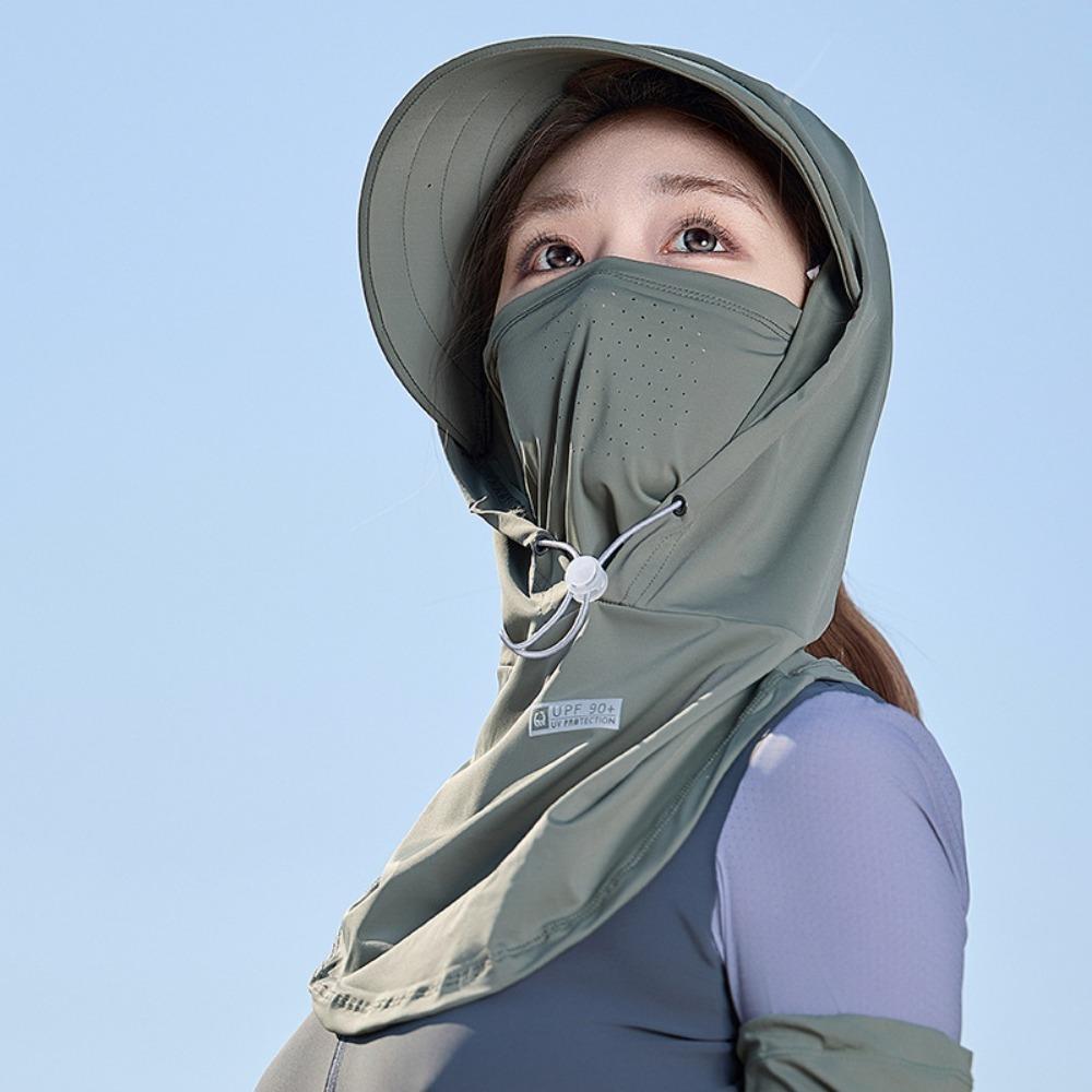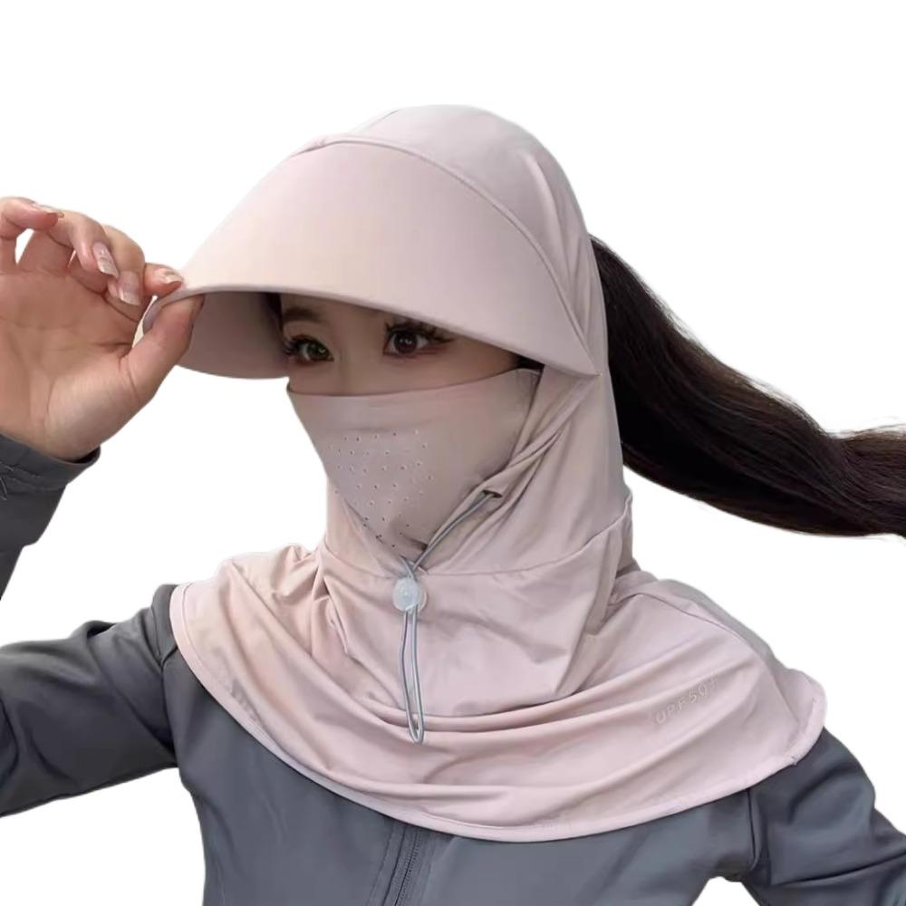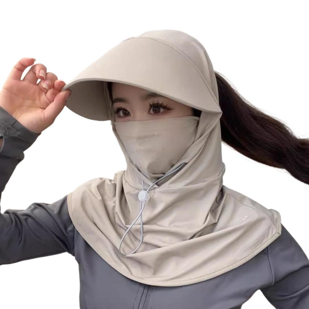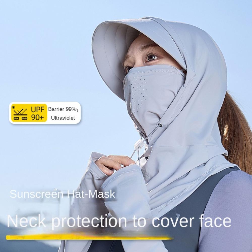 Breathable Full-Face Sunscreen Cap Wide Cap Brim Ice Silk Face Cover Neck Wrap Cover Climbing