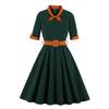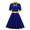 Женское платье в стиле ретро с V-образным вырезом, приталенного силуэта, с короткими рукавами и большой юбкой-клёш