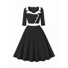 Женское платье миди с рукавом три четверти, однотонное, в стиле ретро, с воротником-стойкой и большой юбкой-клеш — купить товар онлайн с бесплатной доставкой до всему миру!