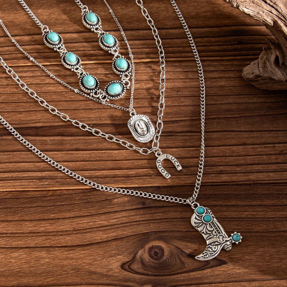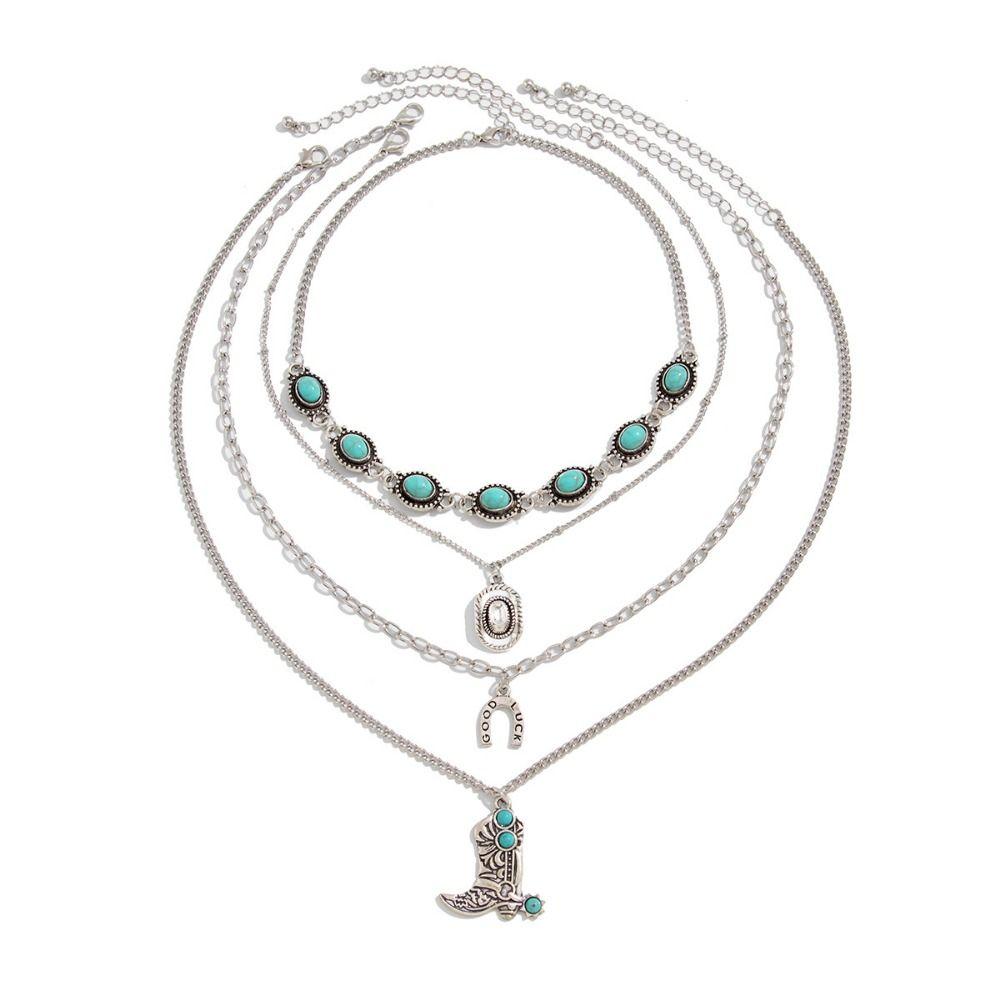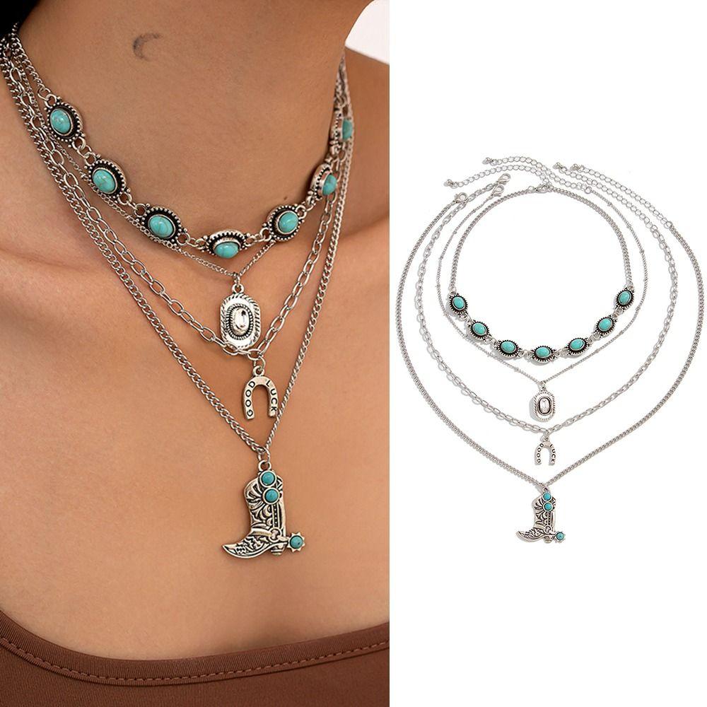 Богемское Винтажное Ожерелье с Подвеской Ковбойский Сапог Многослойное Ожерелье Ювелирный Подарок