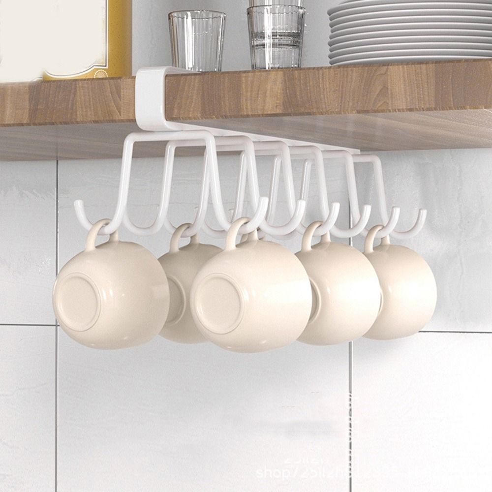 Punch-free 12 Hooks Cup Holder Black/White Under Cabinet Storage Rack Kitchen — купить товар онлайн с бесплатной доставкой до всему миру!