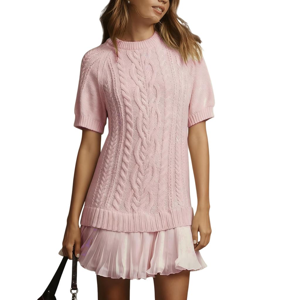 Женское вязаное платье-свитер с круглым вырезом, короткими рукавами, пэчворком, повседневные платья — купить товар онлайн с бесплатной доставкой до всему миру!