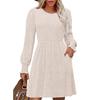 Женское модное платье свободного кроя с длинными рукавами, круглым вырезом, пэчворком и однотонной расцветкой