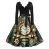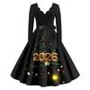 Женское повседневное модное платье винтажного стиля с V-образным вырезом и новогодним принтом