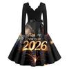 Женское повседневное модное платье винтажного стиля с V-образным вырезом и новогодним принтом