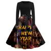 Женское повседневное модное платье с круглым вырезом и длинным рукавом с новогодним принтом в ретро-стиле — купить товар онлайн с бесплатной доставкой по всему миру!