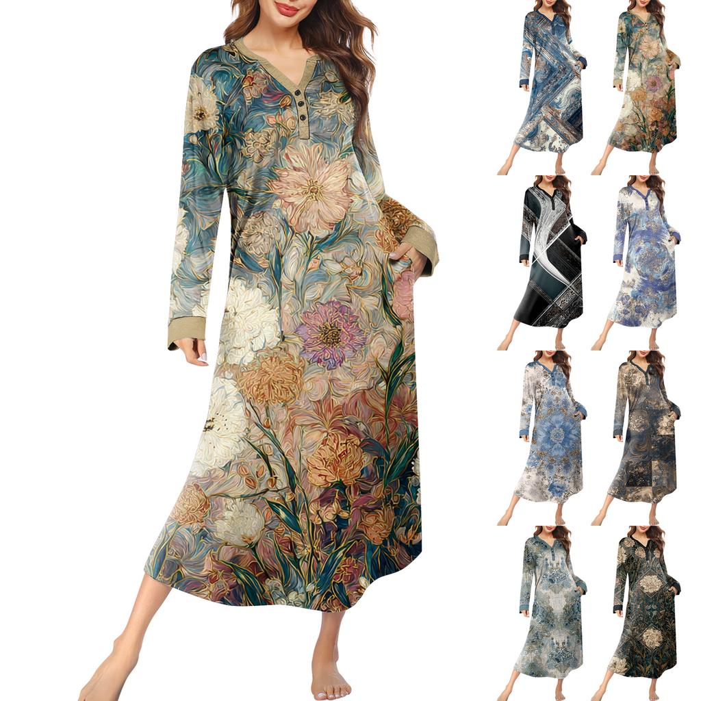 Женская ночная сорочка длинная домашняя одежда с V-образным вырезом и карманами — купить товар онлайн с бесплатной доставкой до всему миру!