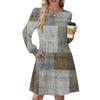 Женское повседневное платье с длинным рукавом, плиссировкой, круглым вырезом, винтажным цветочным принтом и карманами