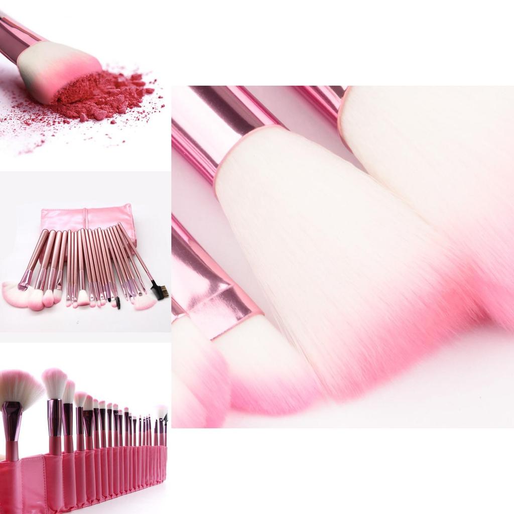 Набор кистей для макияжа 22 шт. с портативным розовым скручивающимся чехлом для растушевки и проработки деталей