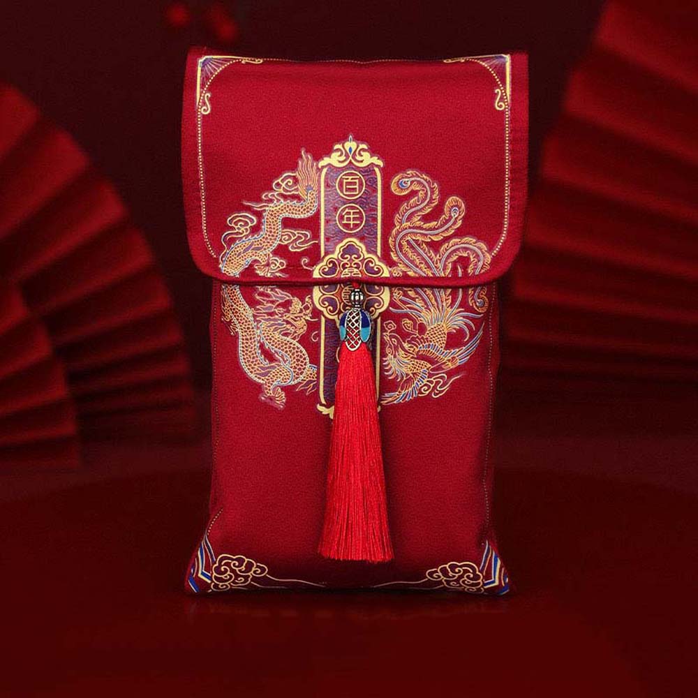 Наилучшие пожелания 2025 Карман для денег Парчовая ткань Кисточка Новогодний денежный мешок Подарки для вечеринки