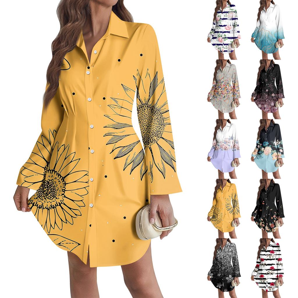 Женское платье свободного кроя с V-образным вырезом и длинными рукавами, с принтом, платье-рубашка для работы — купить товар онлайн с бесплатной доставкой до всему миру!