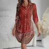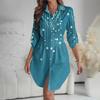 Женское платье свободного кроя с V-образным вырезом и длинными рукавами, с принтом, платье-рубашка для работы