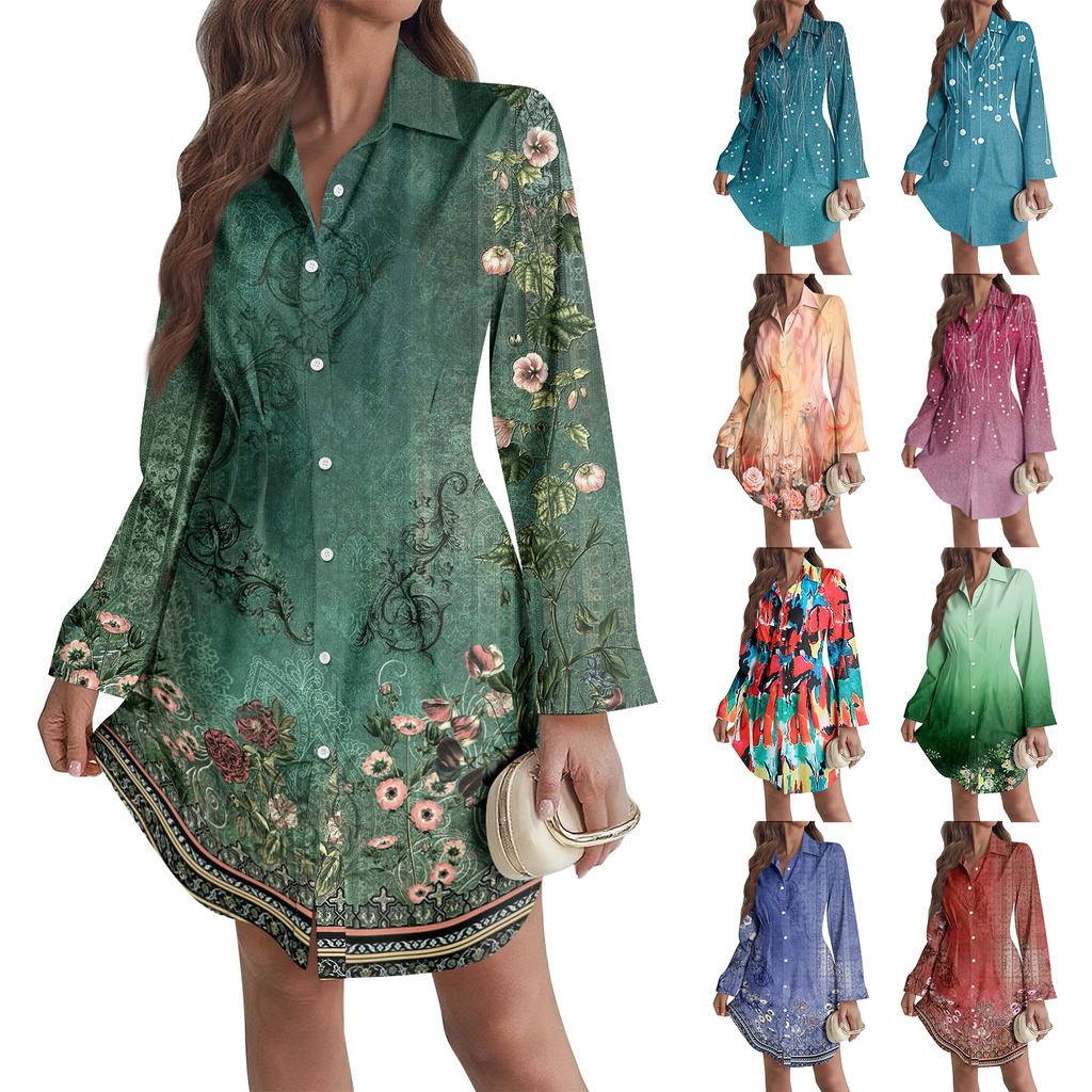 Женское платье свободного кроя с V-образным вырезом и длинными рукавами, с принтом, платье-рубашка для работы — купить товар онлайн с бесплатной доставкой до всему миру!