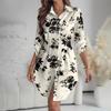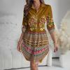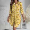 Женское платье свободного кроя с V-образным вырезом и длинными рукавами, с принтом, платье-рубашка для работы