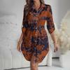 Женское платье свободного кроя с V-образным вырезом и длинными рукавами, с принтом, платье-рубашка для работы