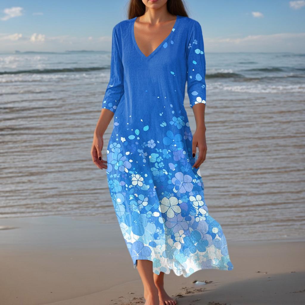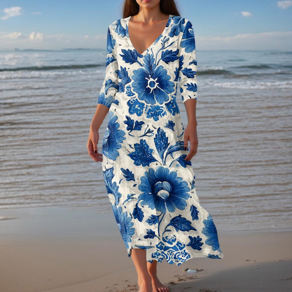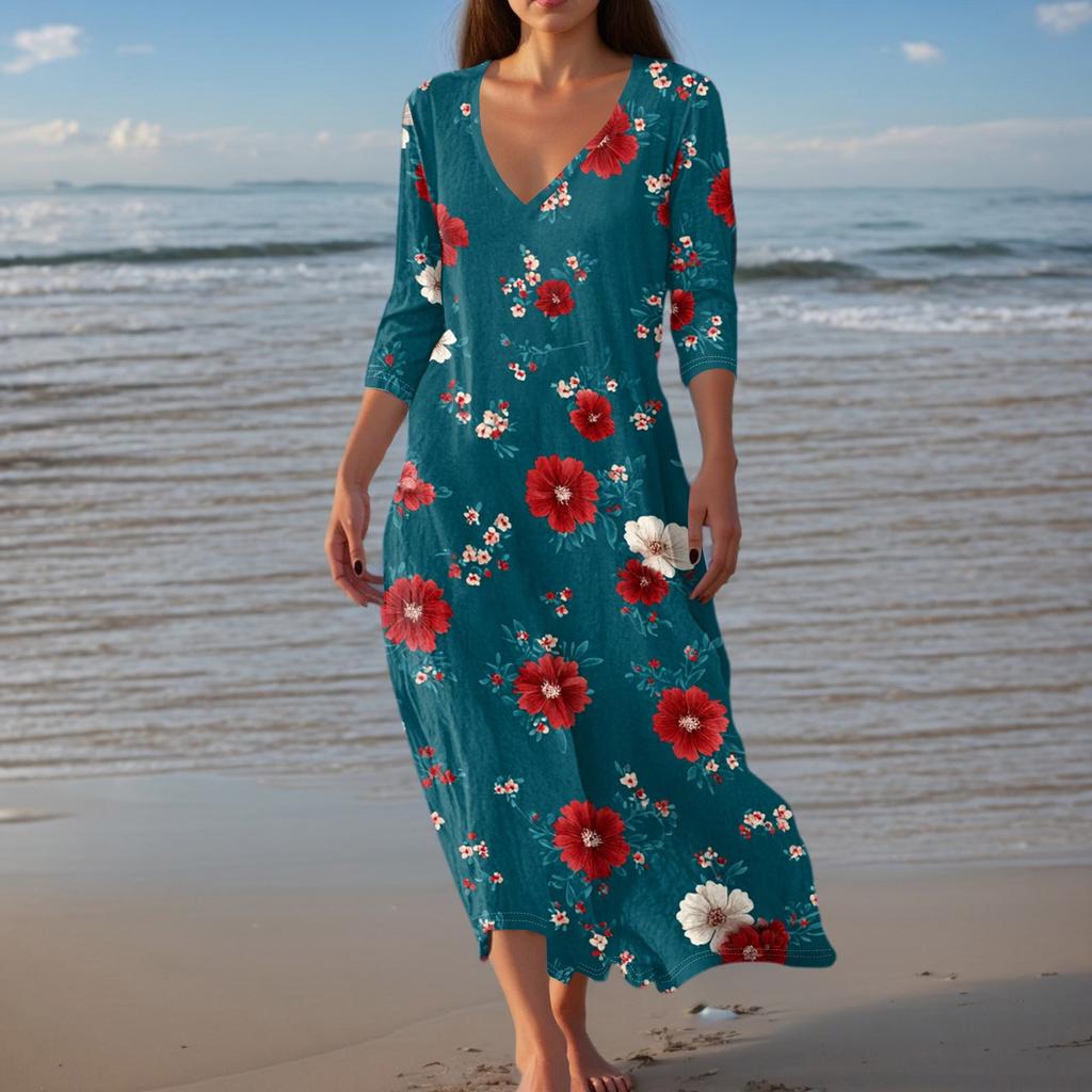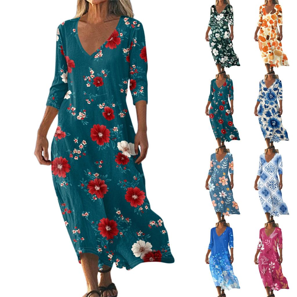 Женское винтажное туниковое миди-платье с принтом, приталенное, летнее, повседневное, с рукавом 3/4
