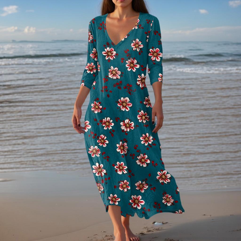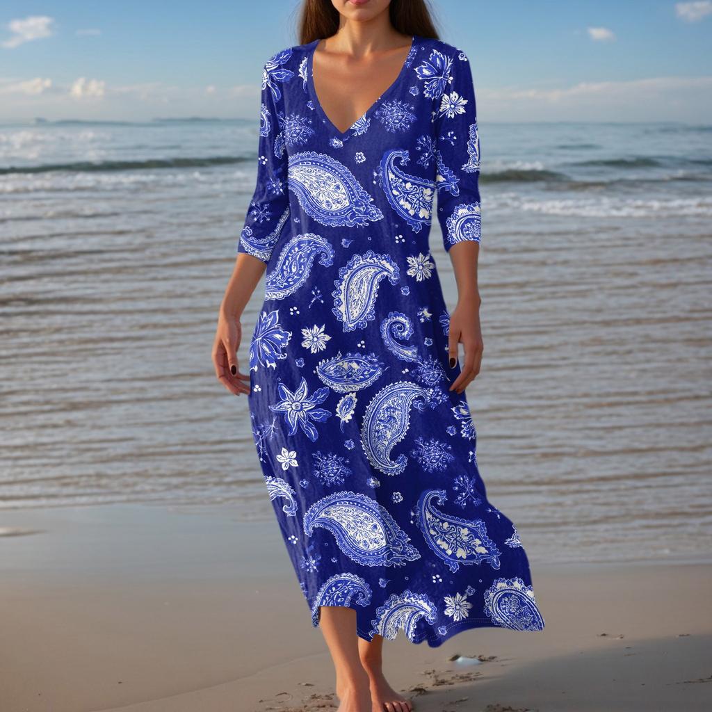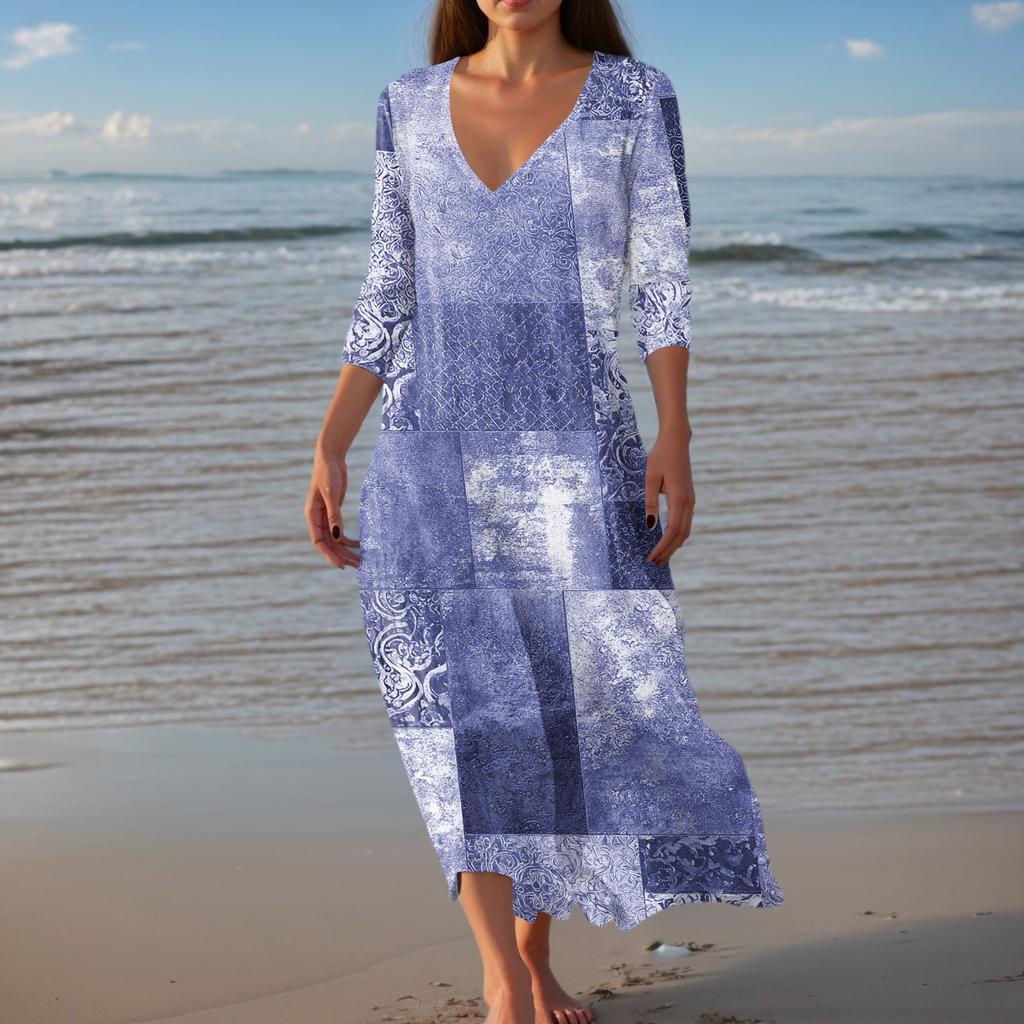 Женское винтажное туниковое миди-платье с принтом, приталенное, летнее, повседневное, с рукавом 3/4