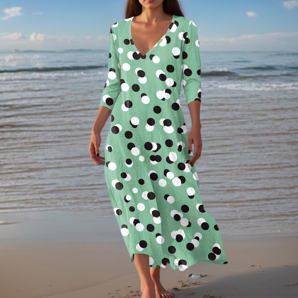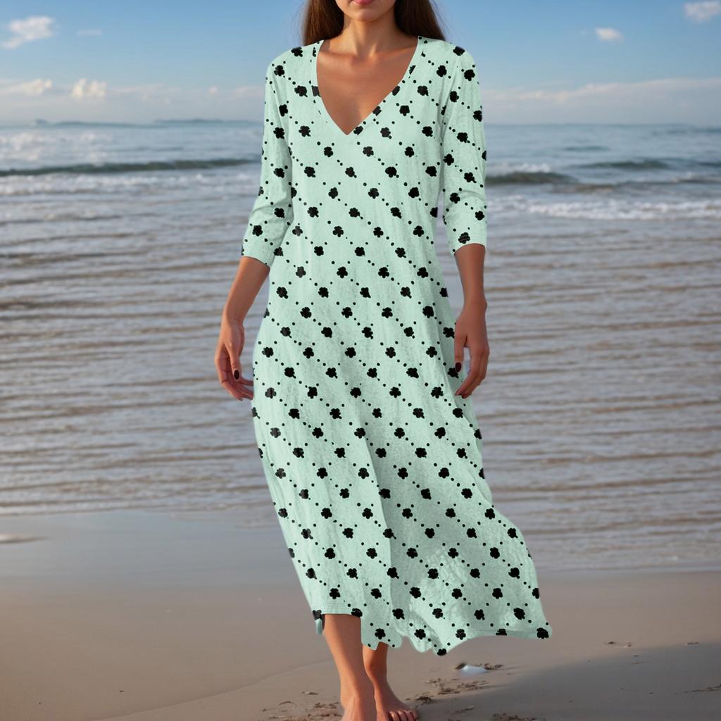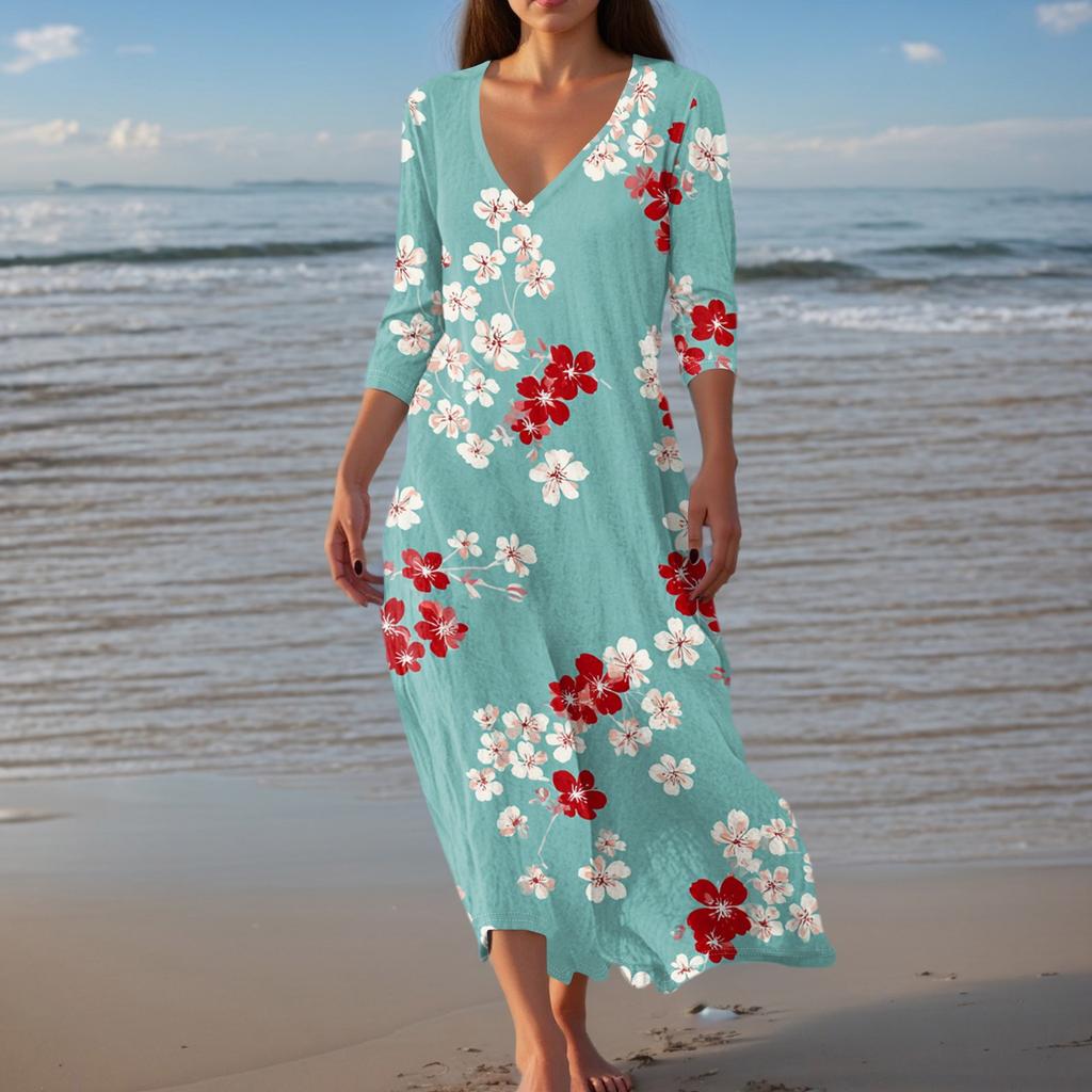 Женское винтажное туниковое миди-платье с принтом, приталенное, летнее, повседневное, с рукавом 3/4