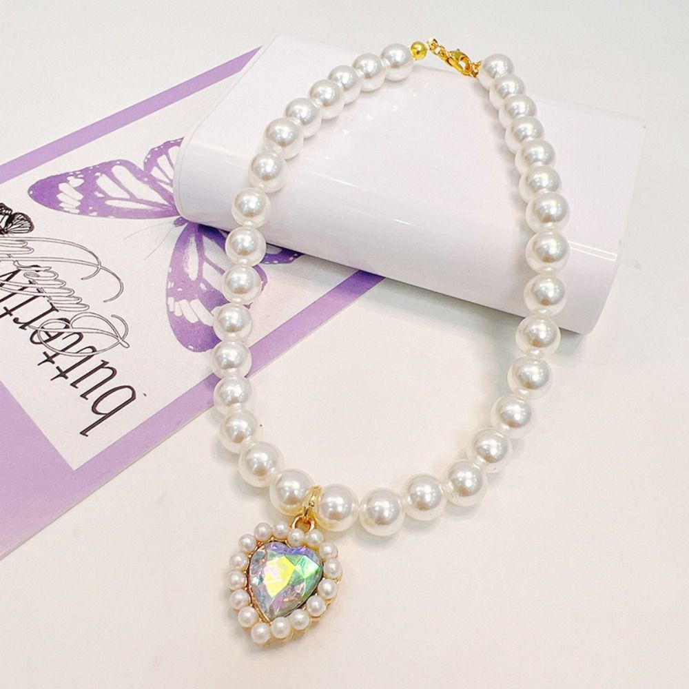 Decorative Pet Pearl Necklace Artificial Pearls/Metal Pet Bling Princess Collar Wedding