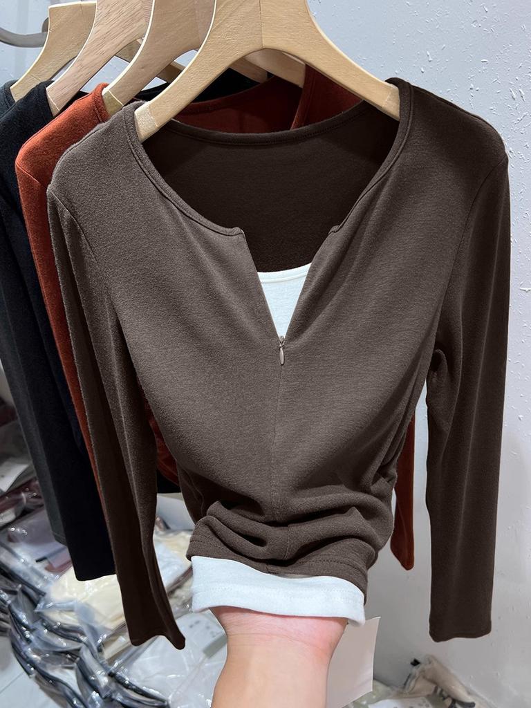 Топ женский весенний на молнии, двухслойный, с контрастной цветной вставкой, с карточками на талии, плиссированный, с длинным рукавом, футболка-подкладка, тренд