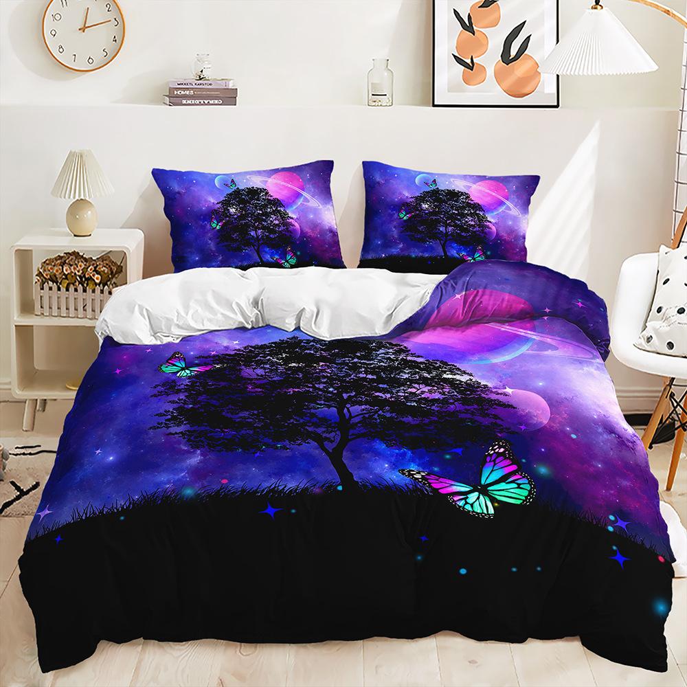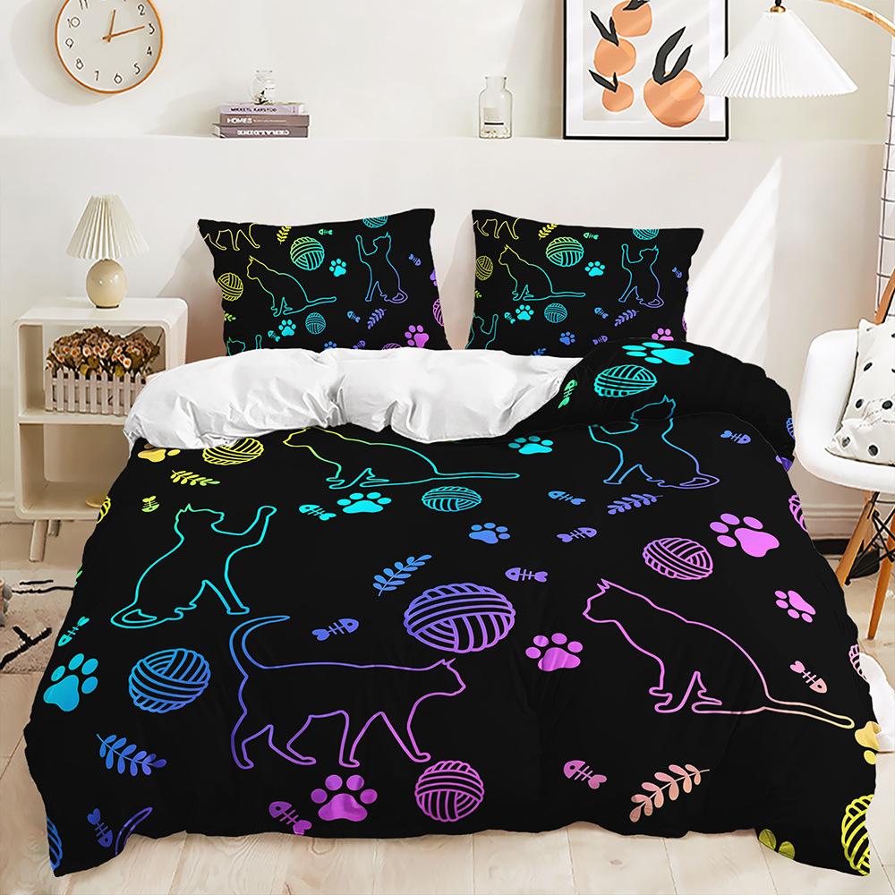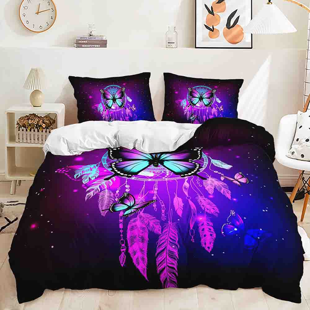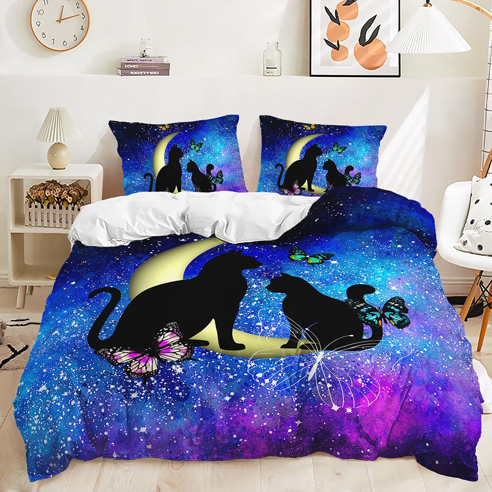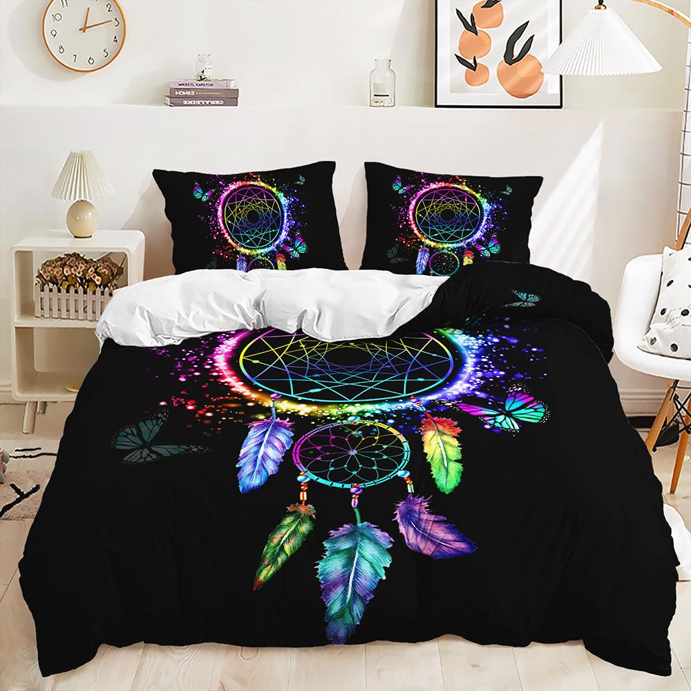 Трехпредметный 3D пододеяльник с градиентным переходом, комплект постельного белья с ловцом снов и кошкой
