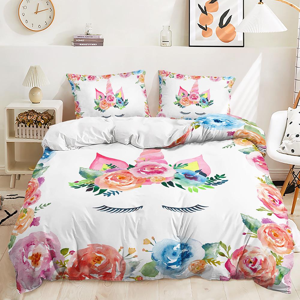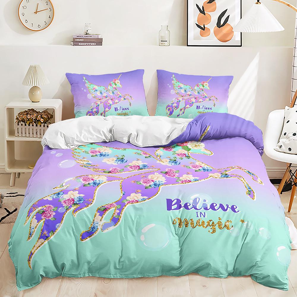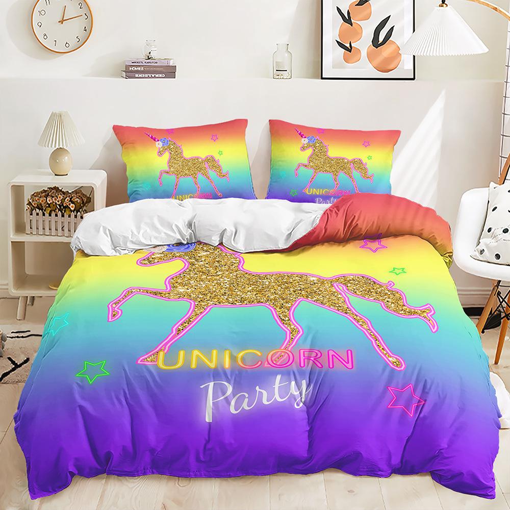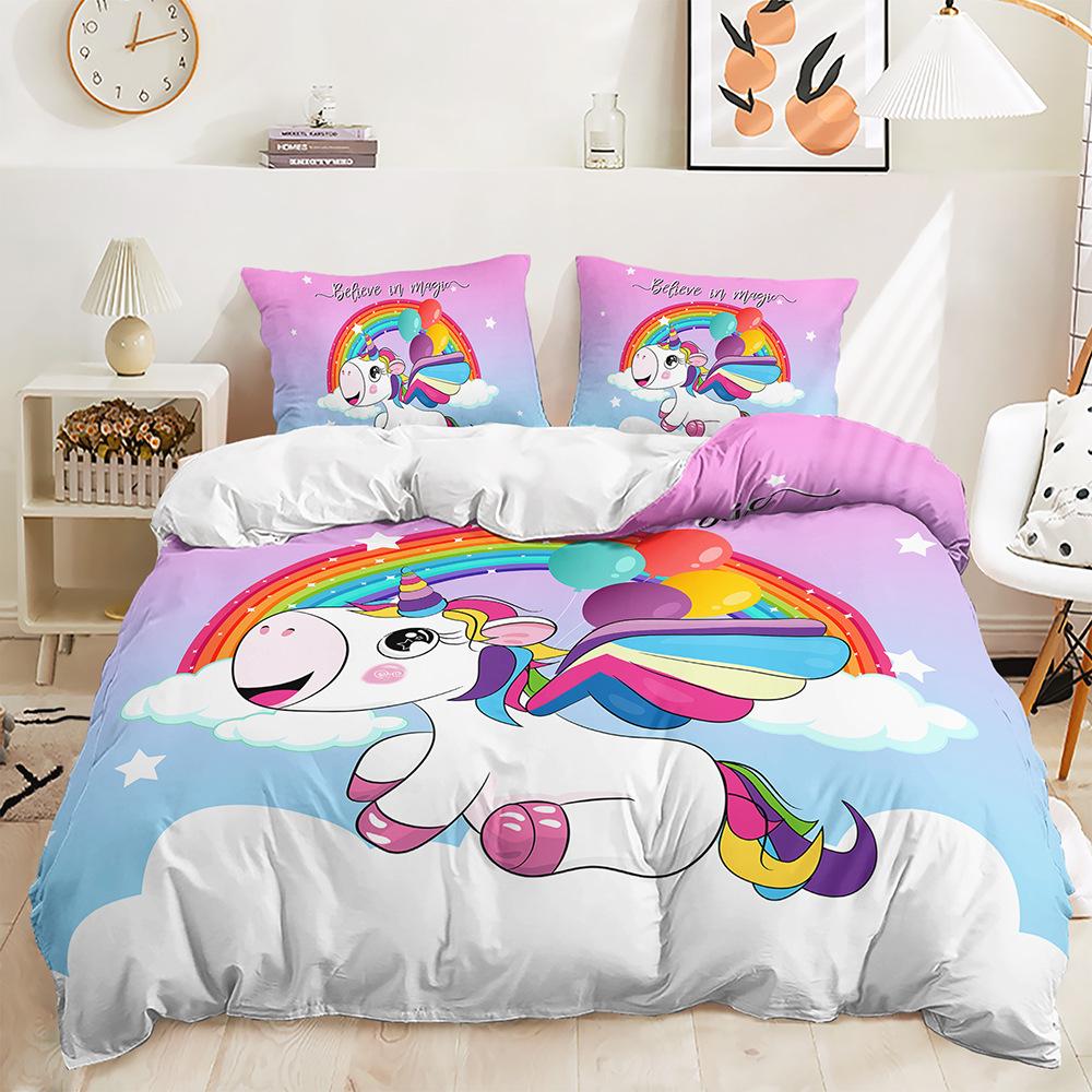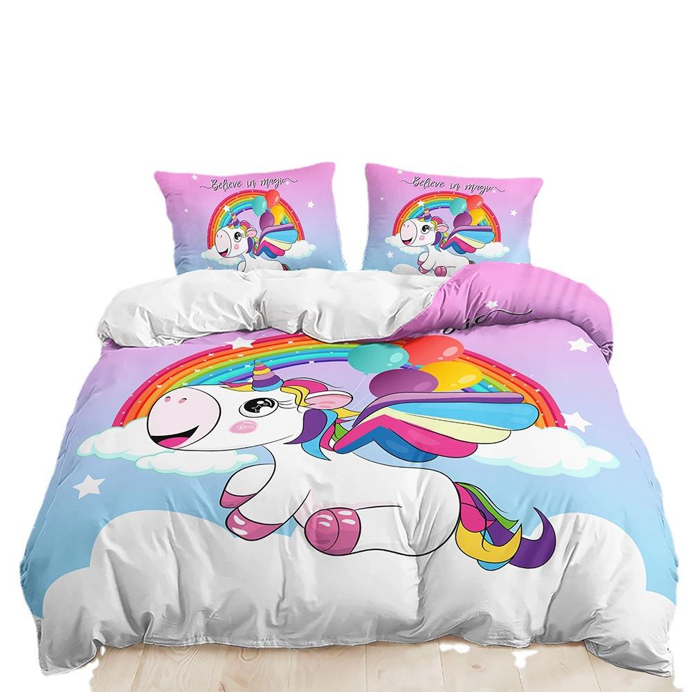 Трехсекционный 3D пододеяльник Мультяшный Единорог Комплект Постельного белья