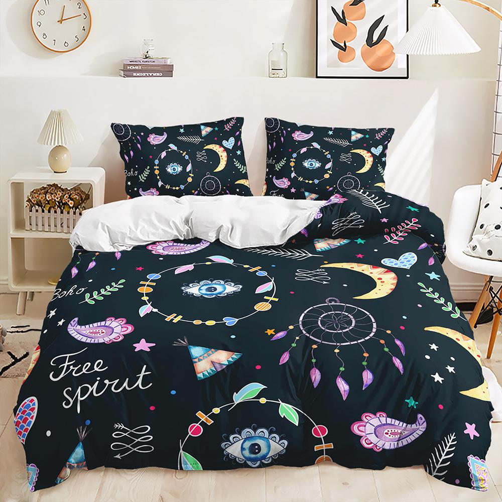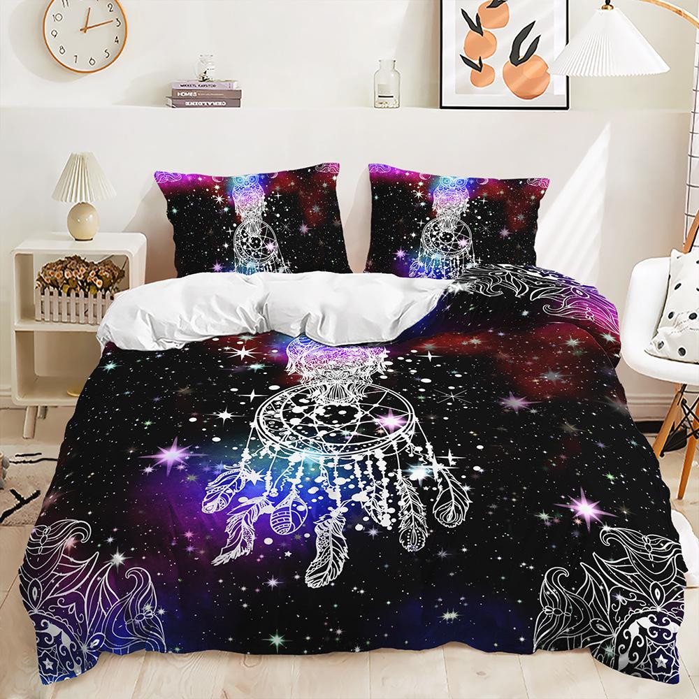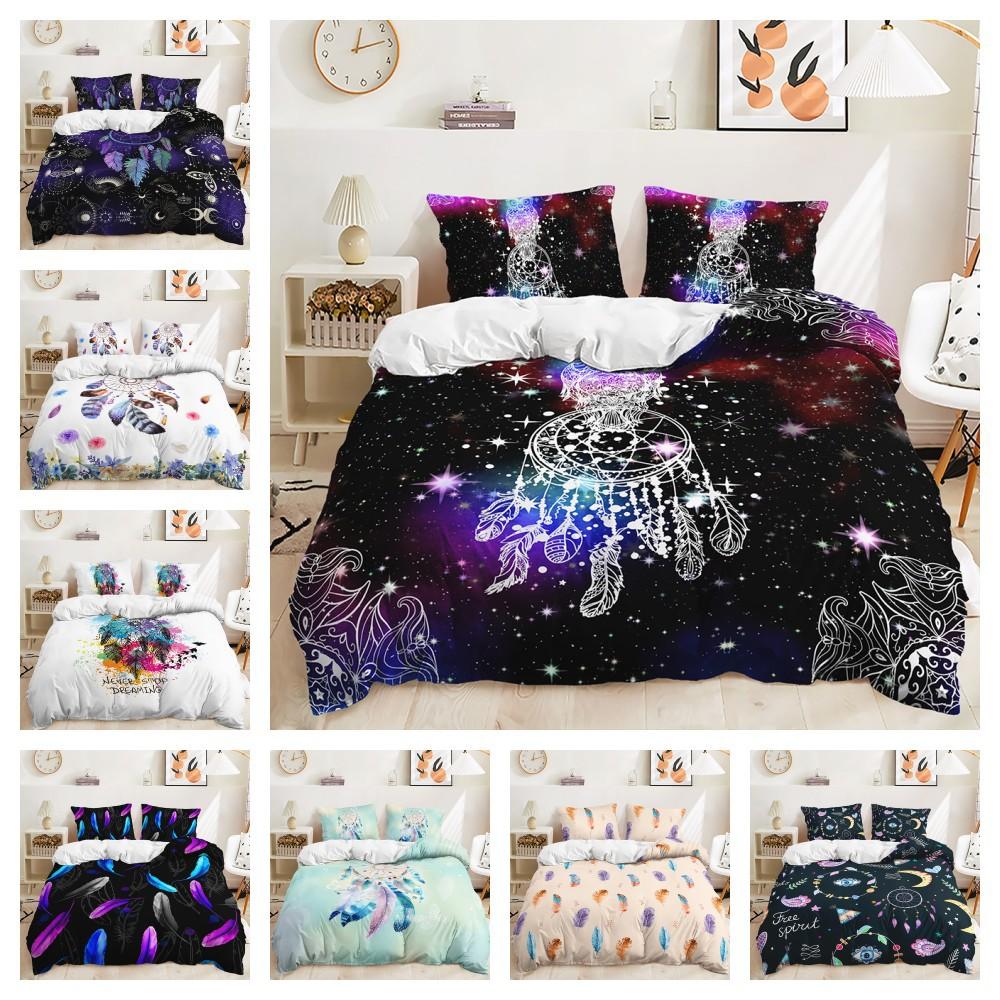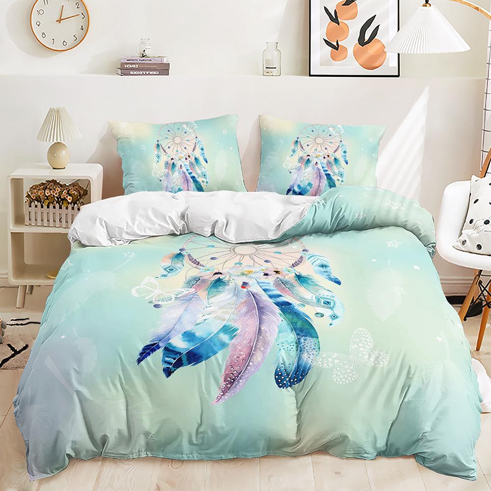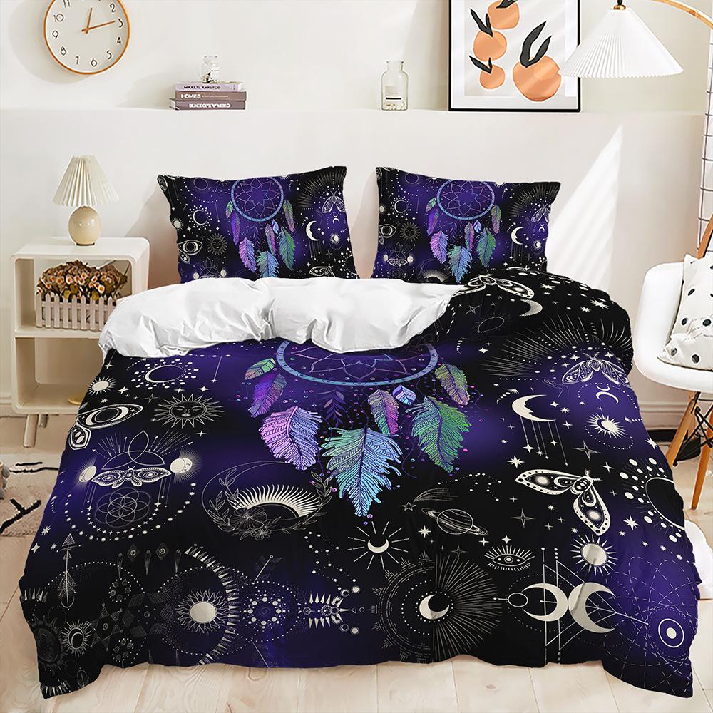 Трехпредметный 3D пододеяльник Ловец снов Перо Темный Комплект Постельное белье