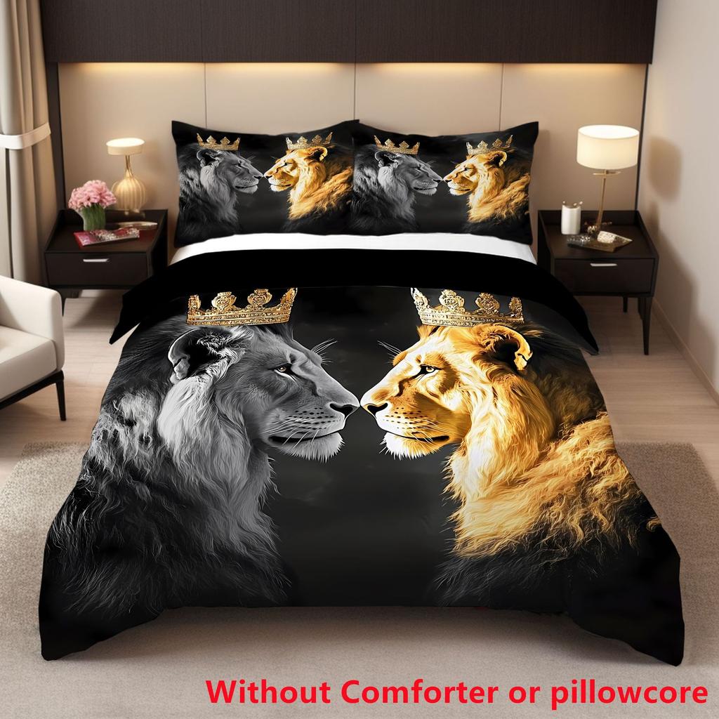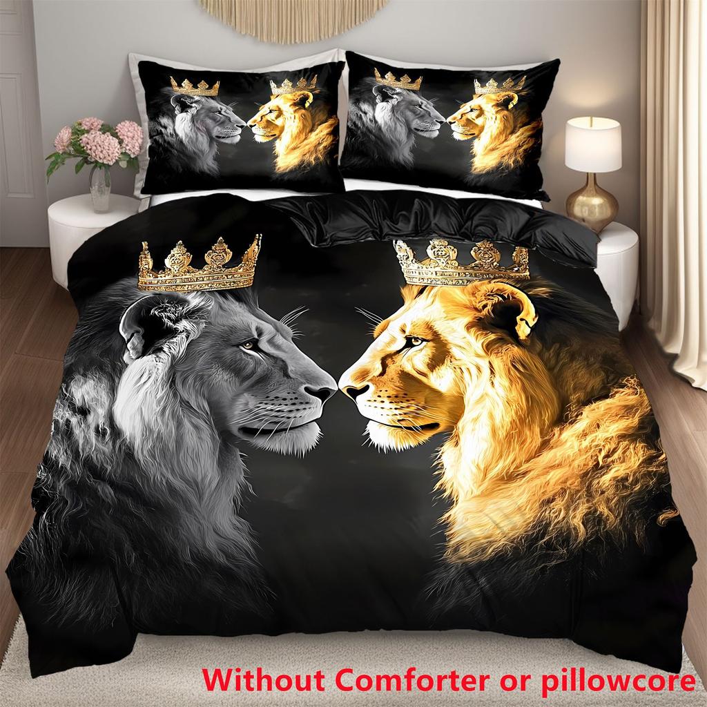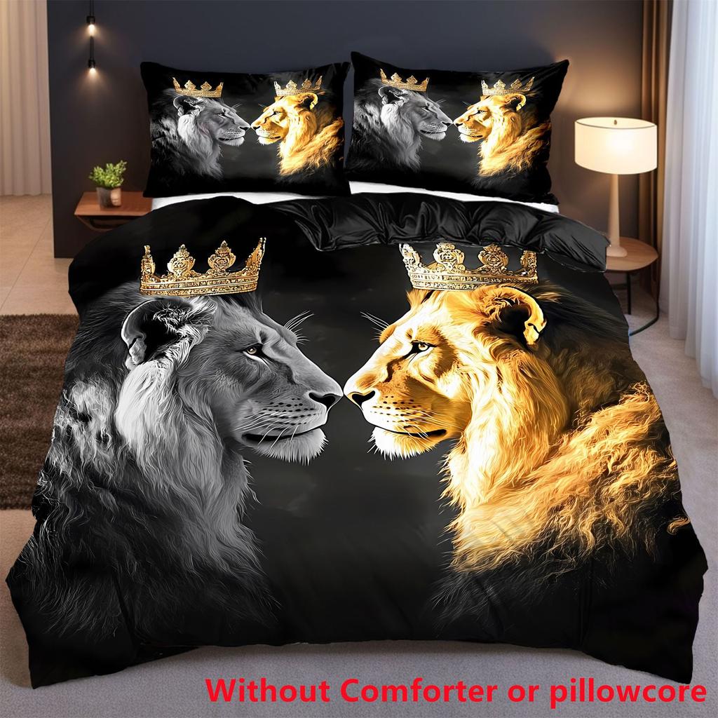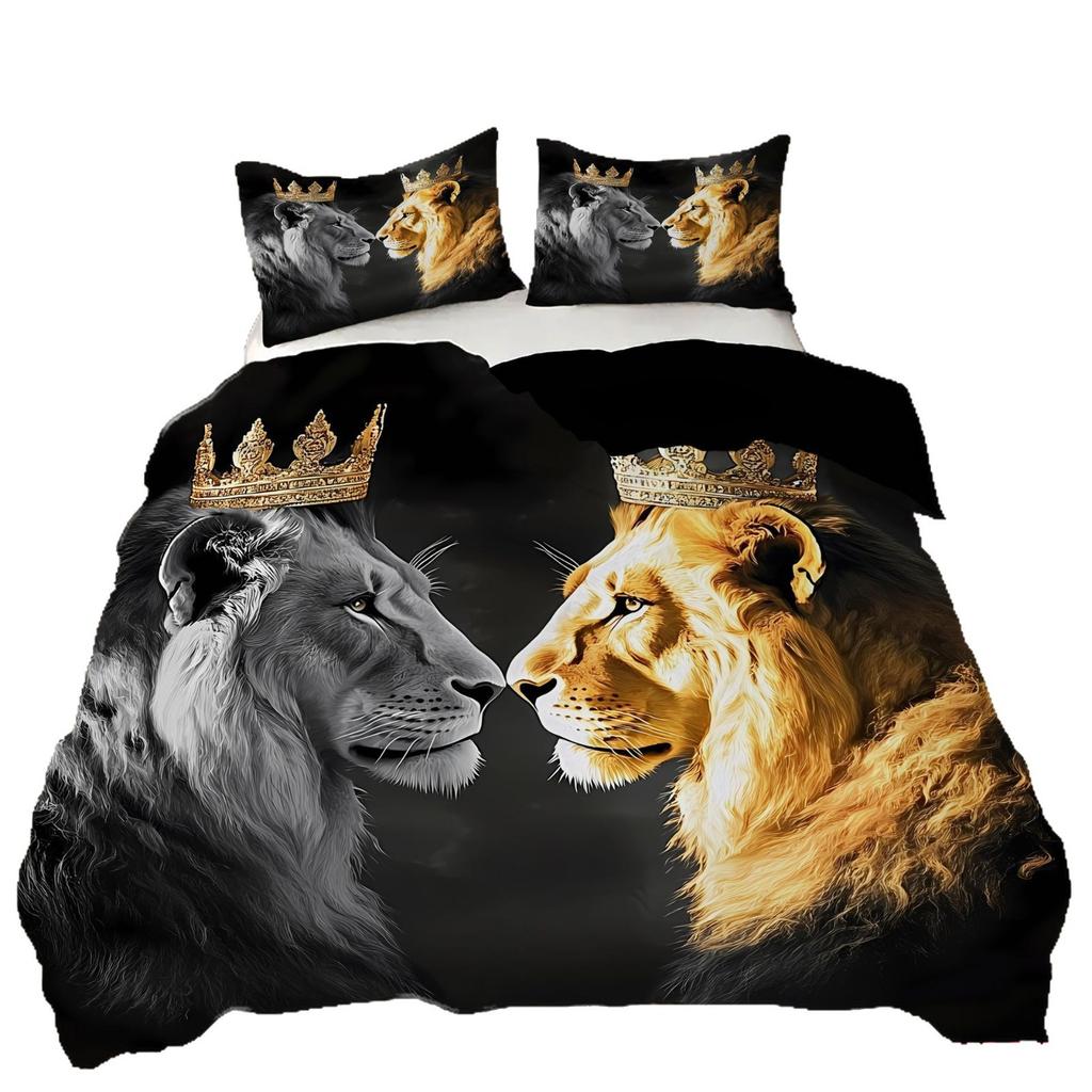 Three-Piece Lion King Digital Printing 3D Quilt Cover, Bedding Home Textiles Three-Piece Set, Made