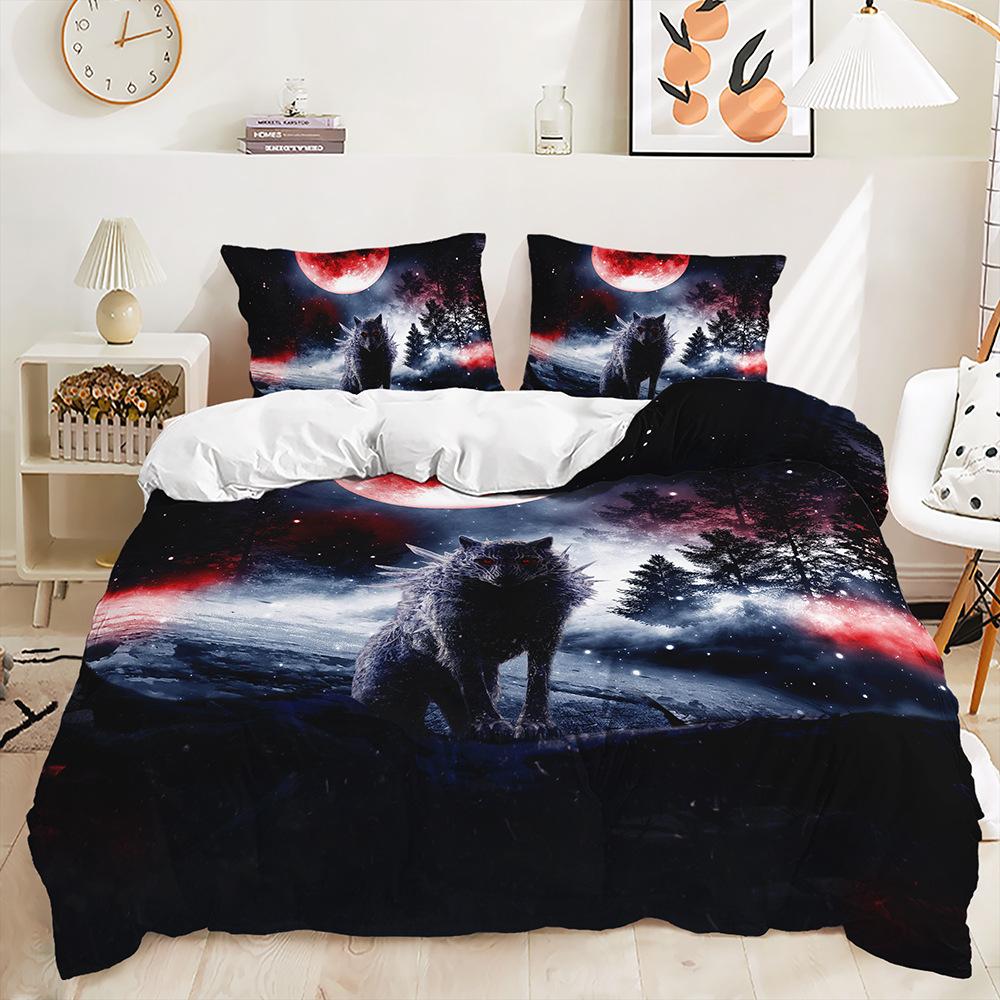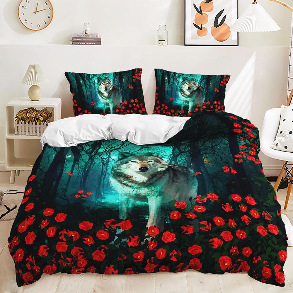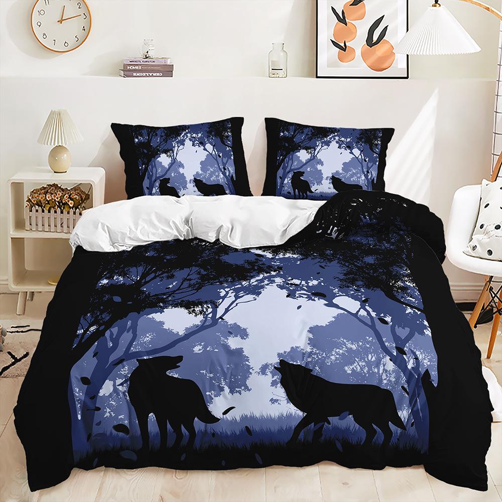 Комплект из трех предметов Покрывало с принтом волка и животных Комплект постельного белья из двух предметов