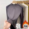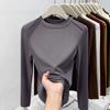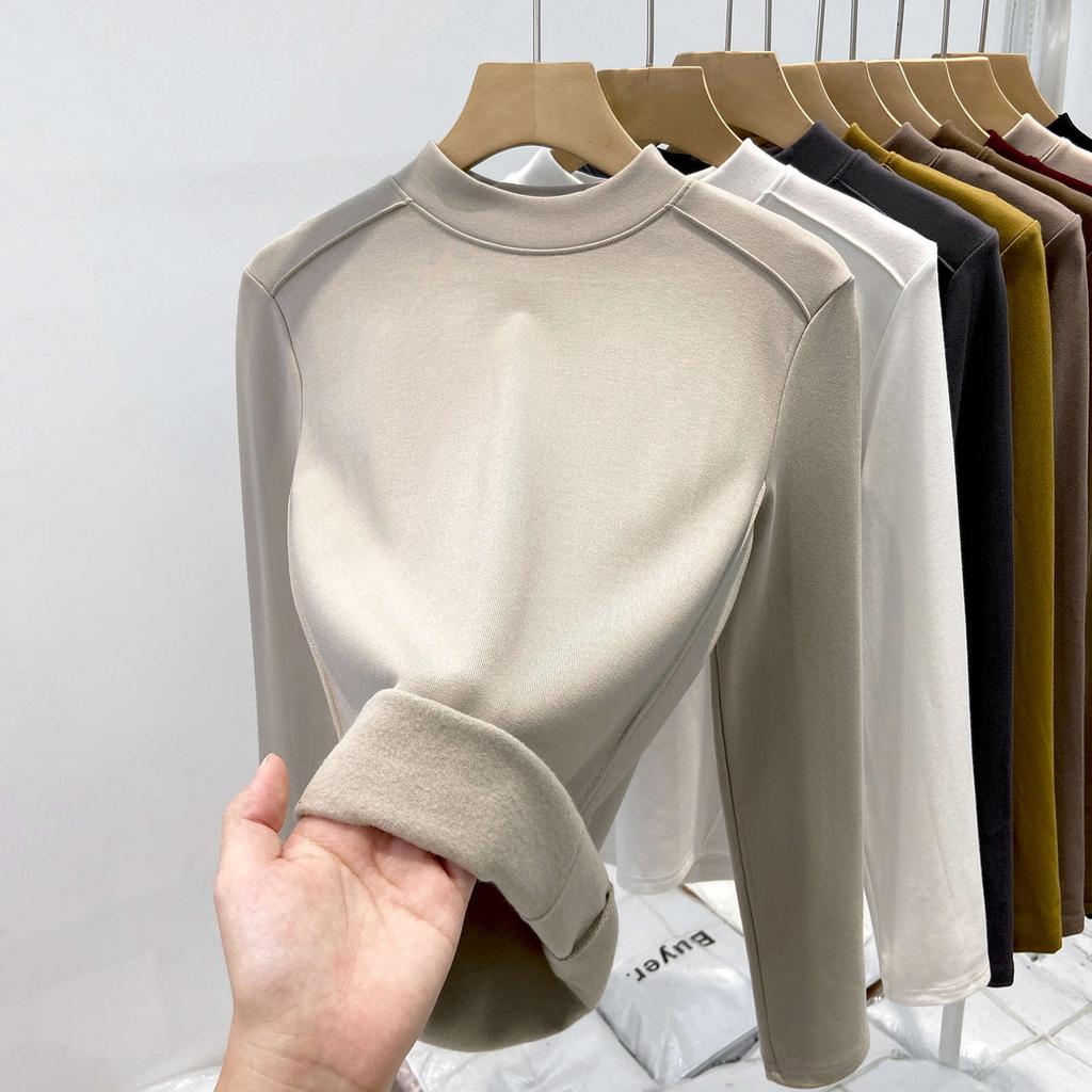 Флисовая полированная футболка с маленьким воротником-стойкой для женщин, весенняя, спереди «рыбья кость», плечо слим-фит, с длинным рукавом, футболка с топом внутри