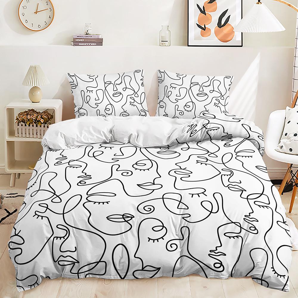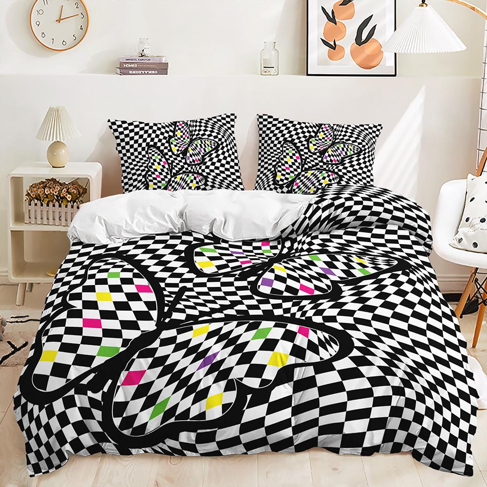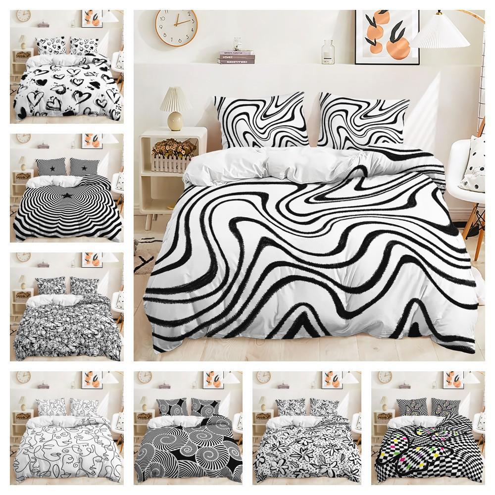 Пододеяльник в черно-белую полоску, наволочка, комплект из трех предметов, постельное белье, простой стиль