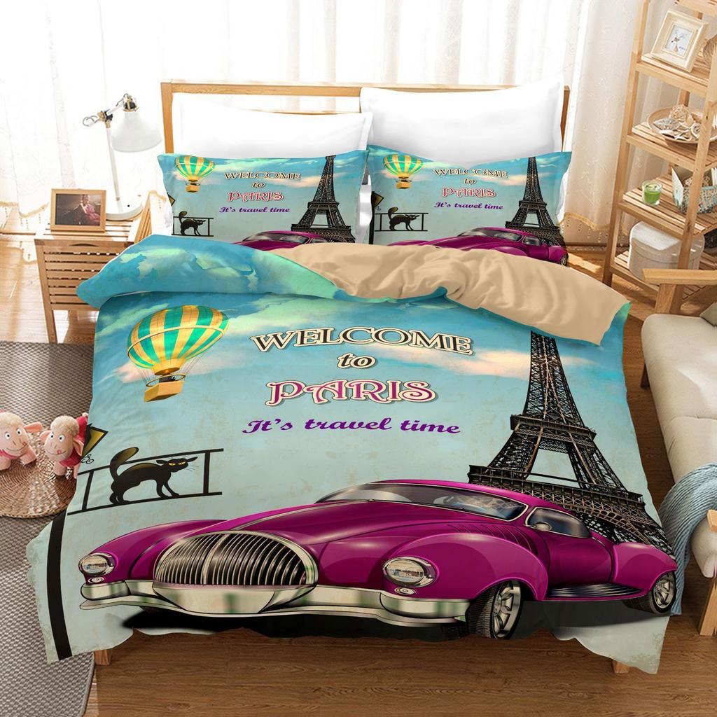 3D Digital Printing Quilt Set Three-Piece Cartoon Retro Car