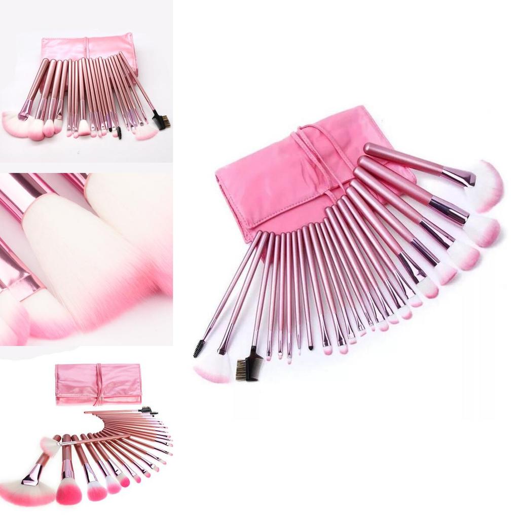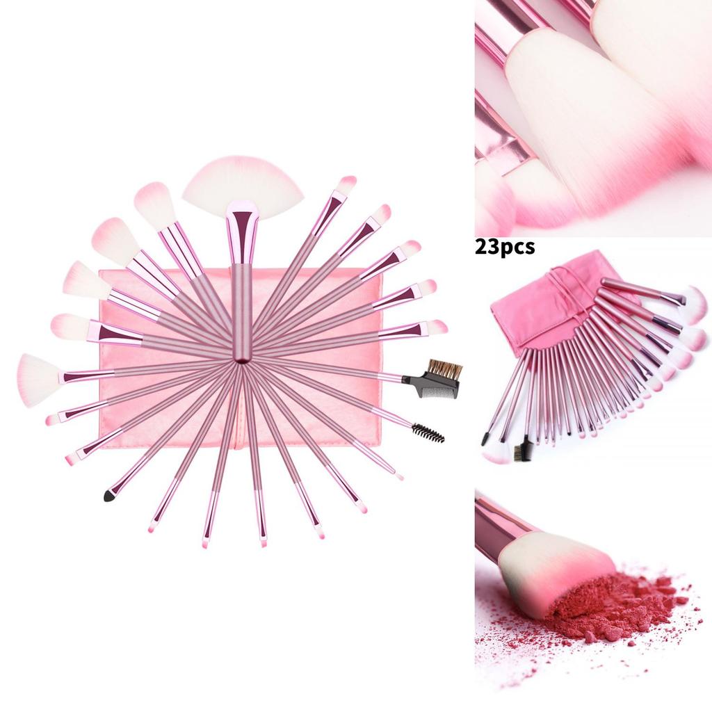 Набор кистей для макияжа 22 шт. с портативным розовым скручивающимся чехлом для растушевки и проработки деталей
