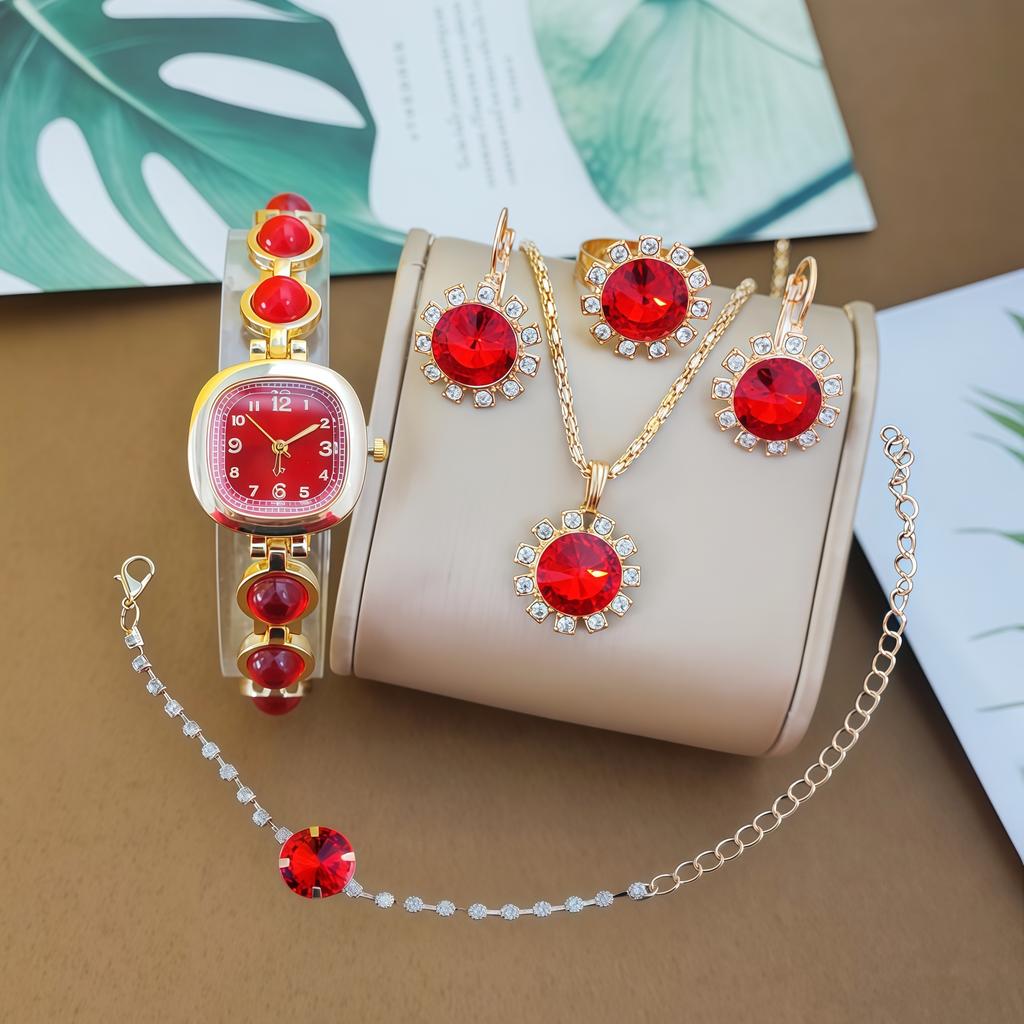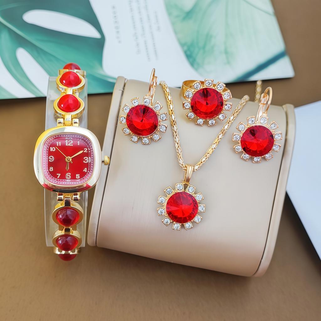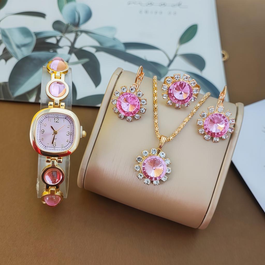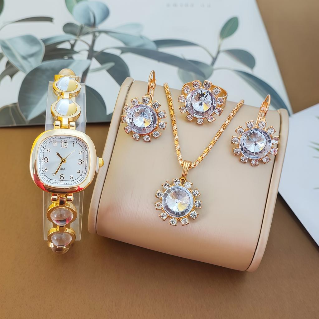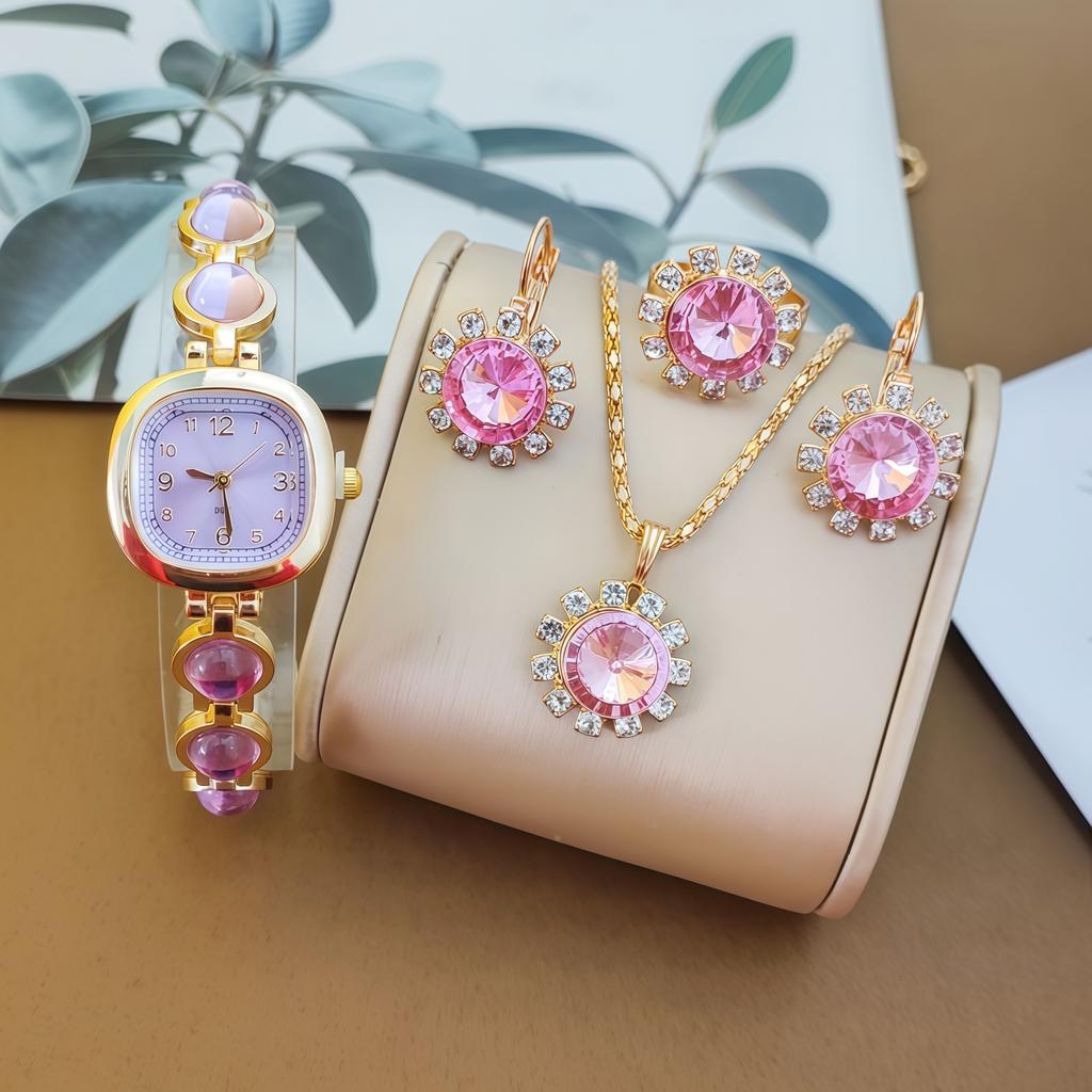Женский набор с драгоценными камнями, кварцевые часы, круглый цифровой, роскошный браслет с бриллиантами в каратах, набор аксессуаров для часов.