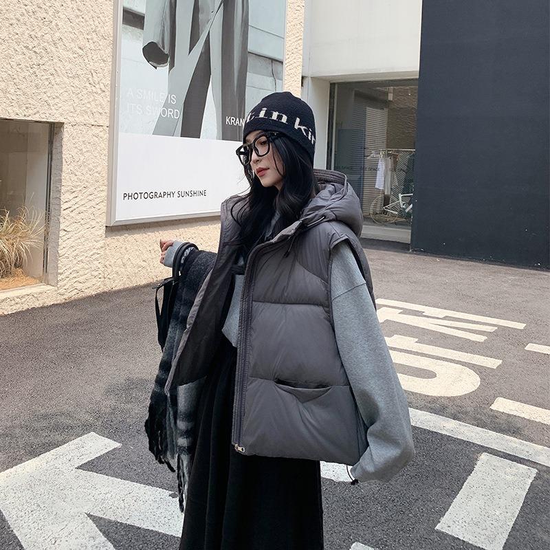 Autumn and winter new puff cotton-padded vest women's short hooded loose vest vest vest jacket