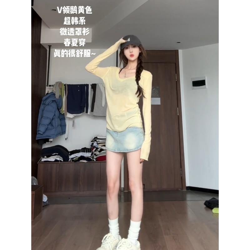 Ярко-желтая облегающая и тонкая базовая женская футболка с длинным рукавом на весну, тонкая, слегка прозрачная — купить товар онлайн с бесплатной доставкой по всему миру!
