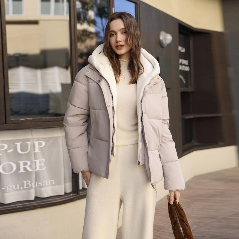 Имитация норкового бархата, двухкомпонентная куртка с капюшоном, вставками из хлопка и пуха, зимняя новая короткая куртка-хлебница — купить товар онлайн с бесплатной доставкой по всему миру!