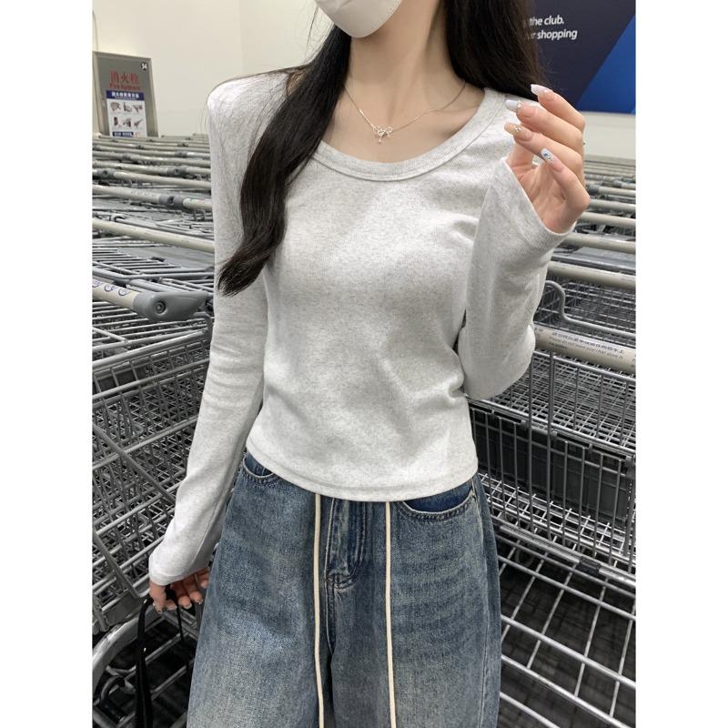 Весенняя блузка с открытыми плечами Spice Girl с длинным рукавом, женский облегающий короткий топ, простая однотонная базовая рубашка