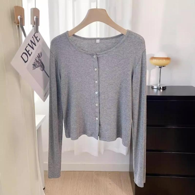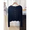 Gentle wind single-row button-up knitted jacket women's spring relaxation versatile short top gray cardigan