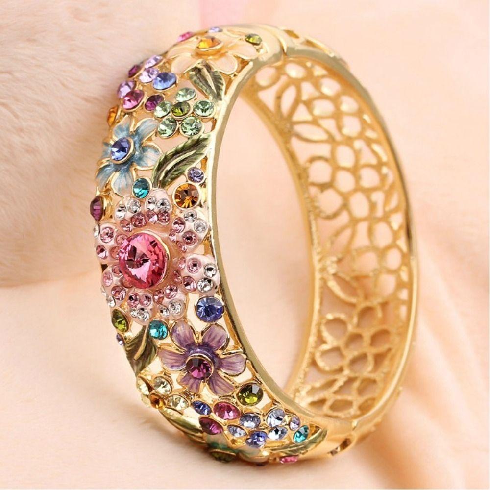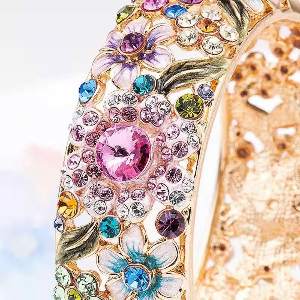 Этнический китайский браслет клуазоне со стразами, женский браслет на руку, ажурный браслет-манжета с цветком, подарки