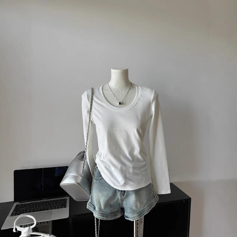 Базовый воротник, облегающая плечи нижняя рубашка, женский весенний простой внутренний топ, белая рубашка с длинным рукавом
