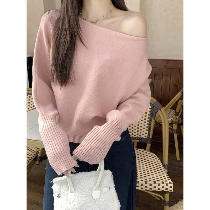 Розовый нежный и милый однословный свитер с косым плечом, свободная базовая рубашка, женское осенне-зимнее пальто с топом — купить товар онлайн с бесплатной доставкой по всему миру!