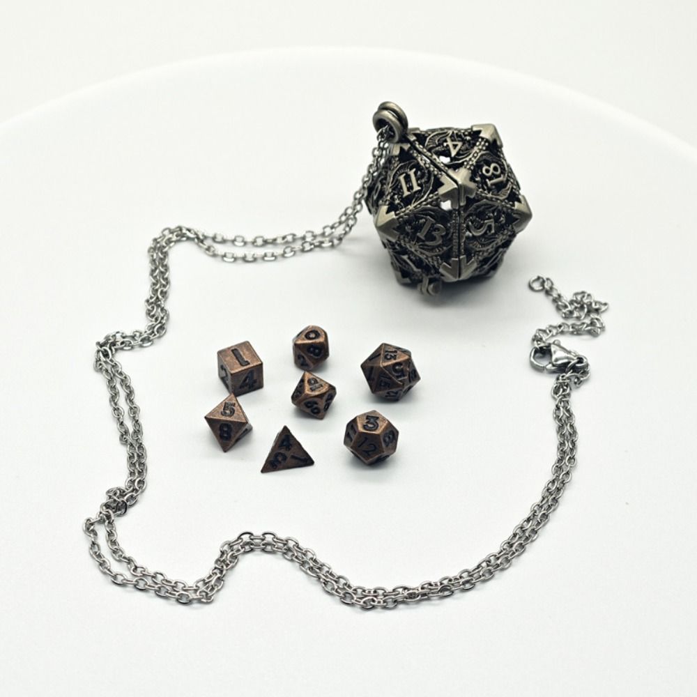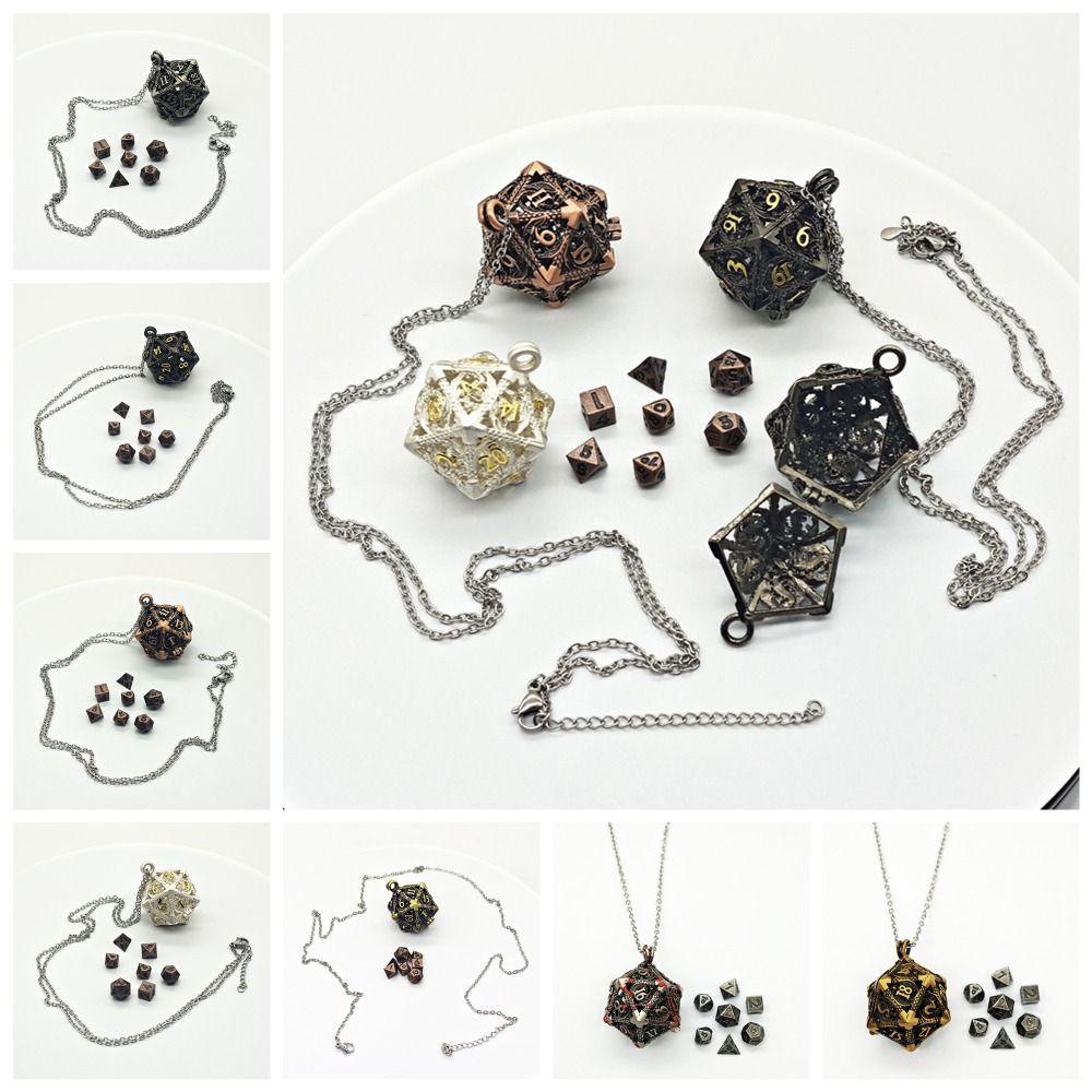 1 Набор DND Полый Металлический Кубик Ожерелье TRPG Многогранный Кубик Ожерелье Настольная Игра