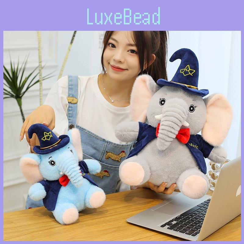 Плюшевая игрушка слон для детей мягкая мультяшная подушка для сна с шляпой волшебника и бантом